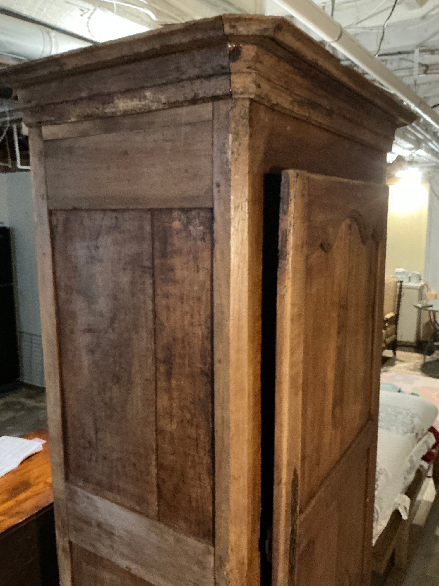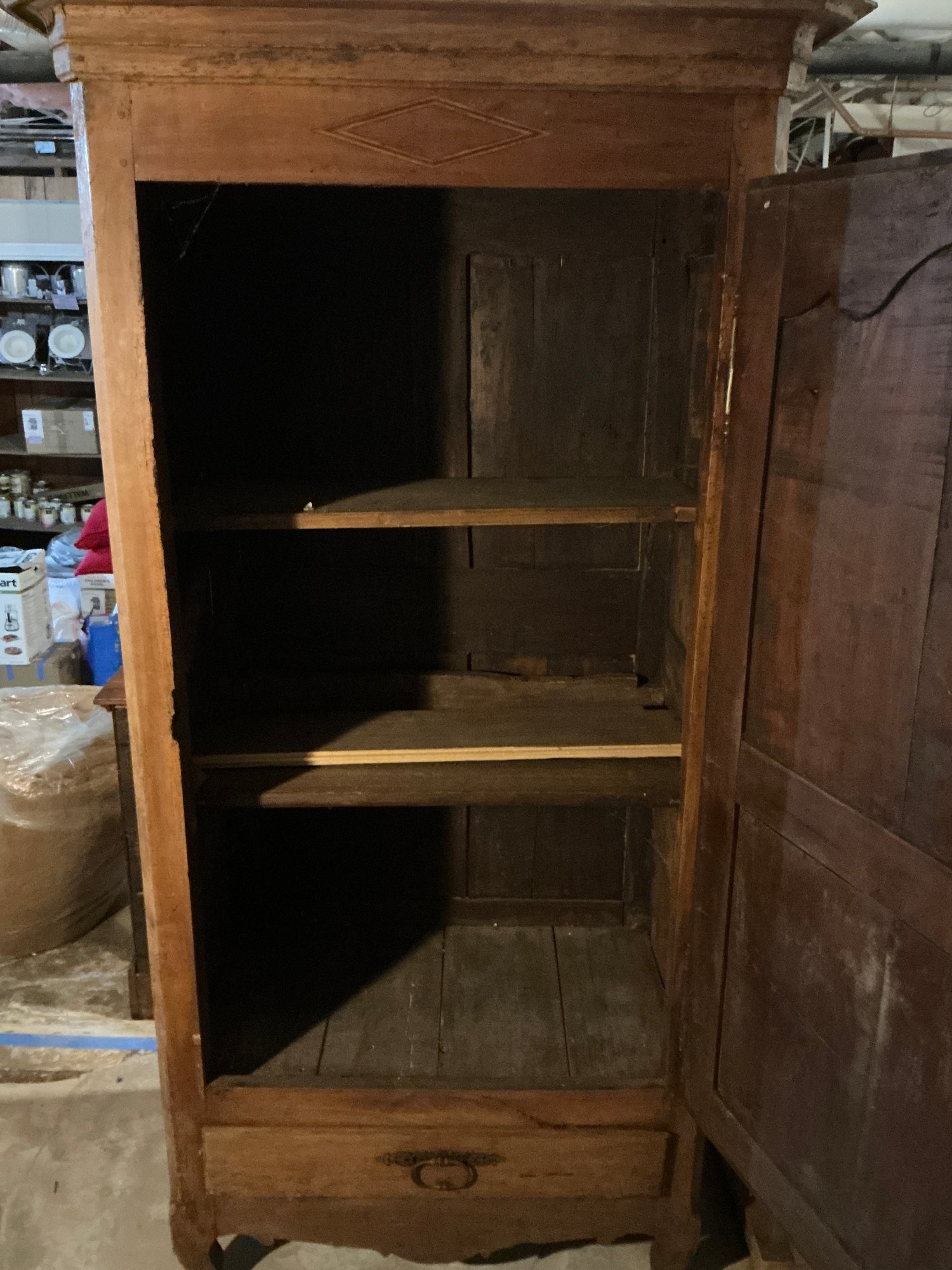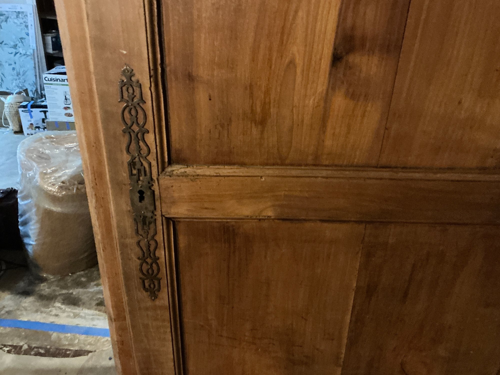Antique French Armoire in good vintage condition. Measures 7’ H x 26” D x 38” W.