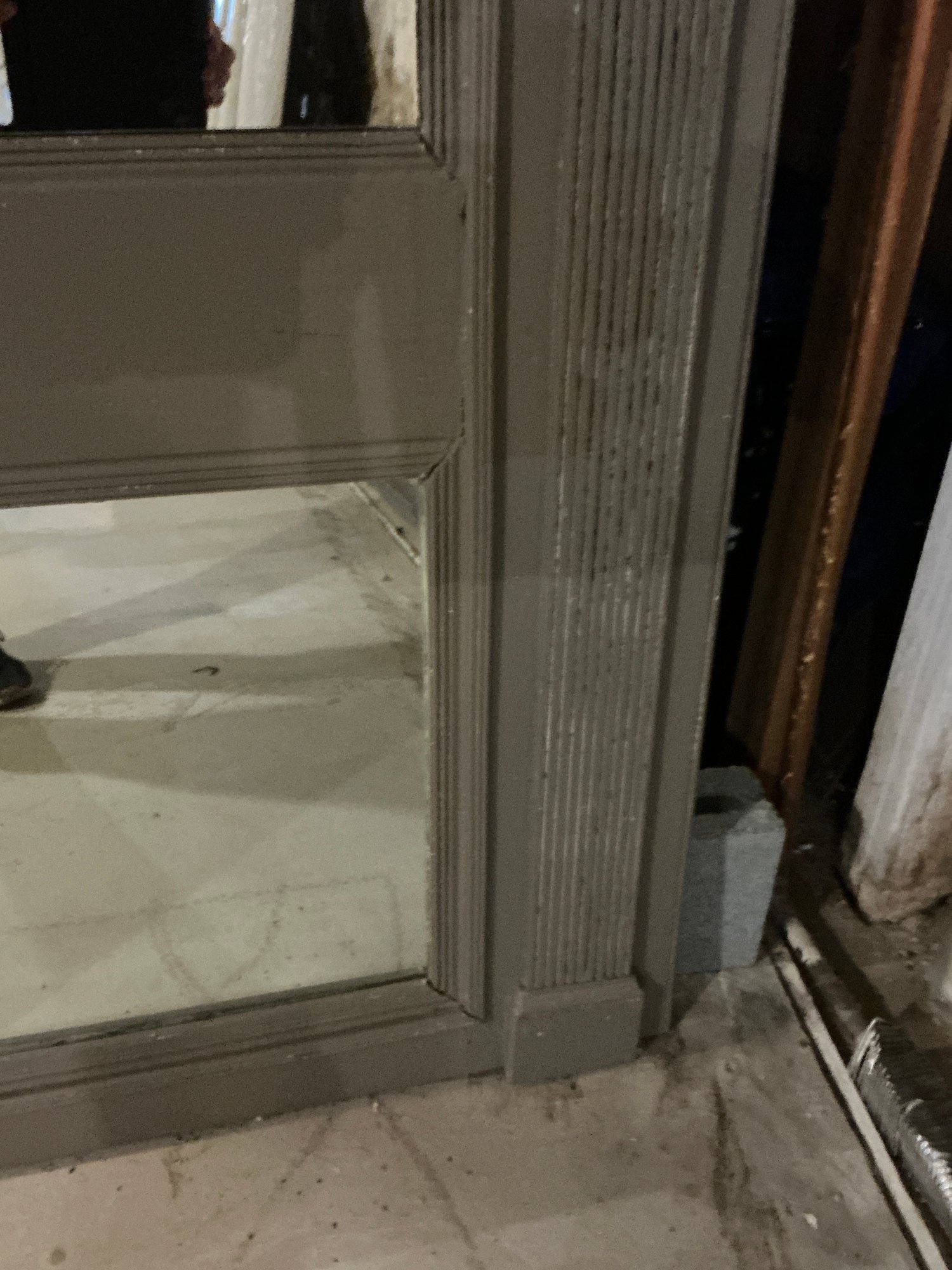 Antiqued French Trumeau Mirror. Mirror is in good condition and 67” x 46”.