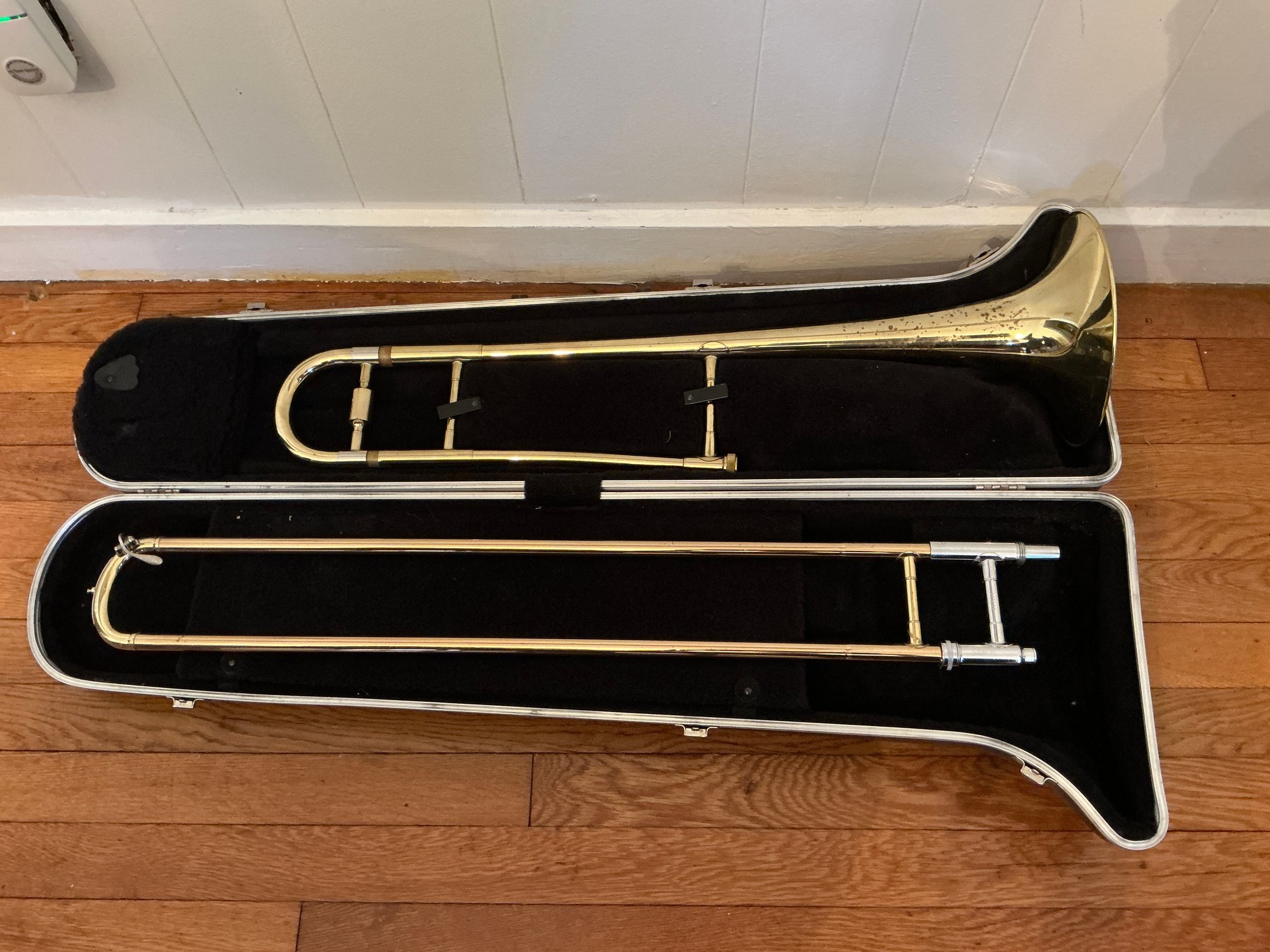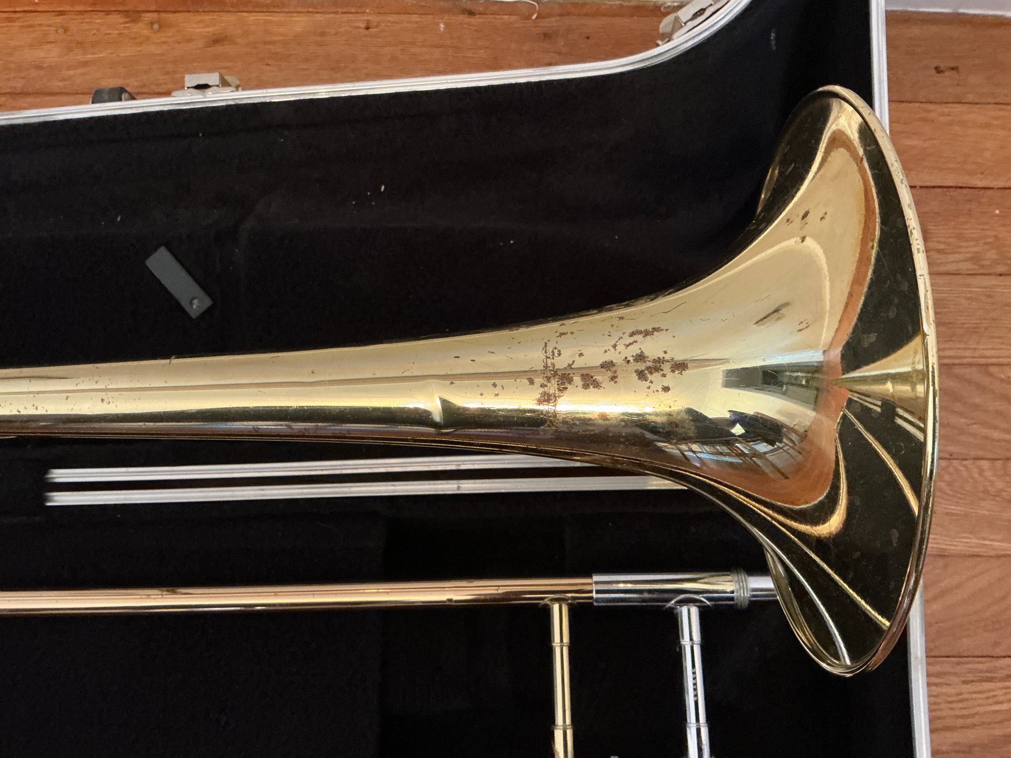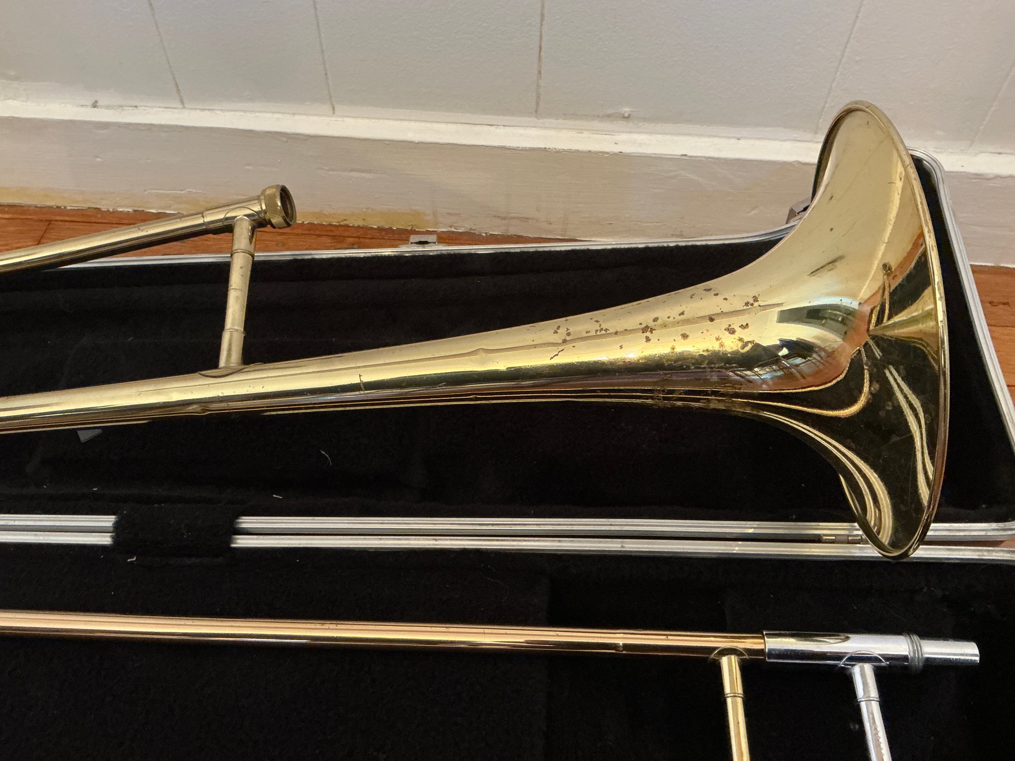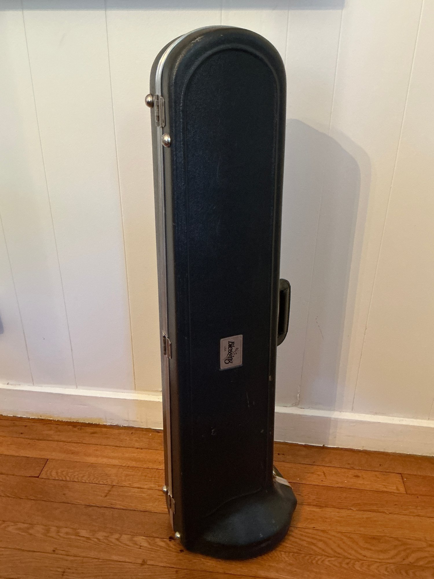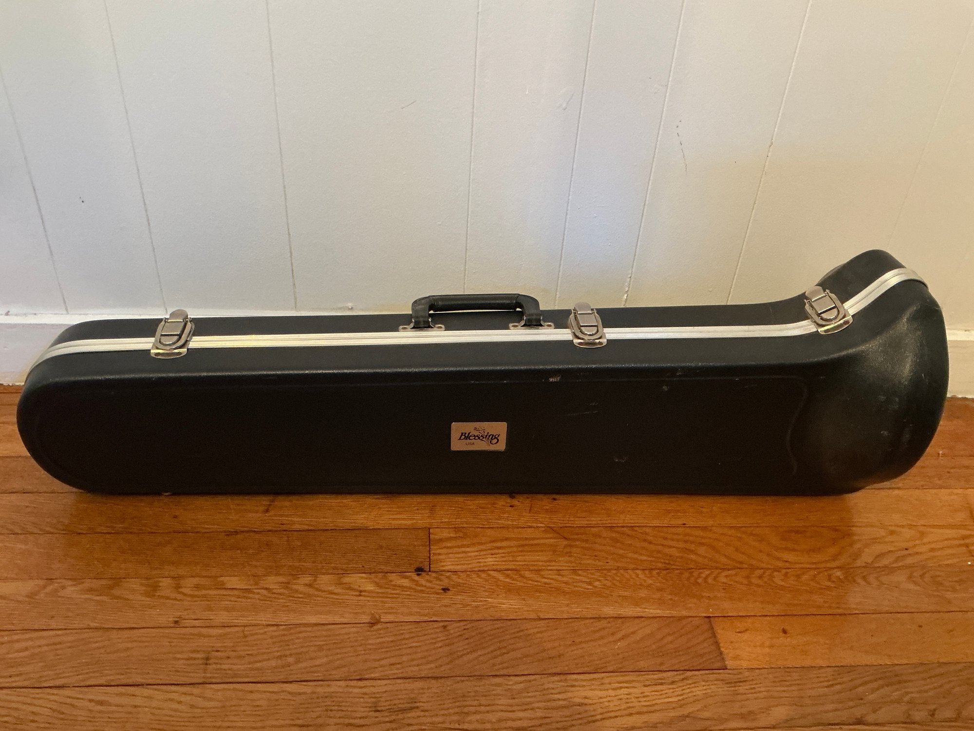 Blessing used Trombone With Hard Case. Trombone has spotting and some dents.