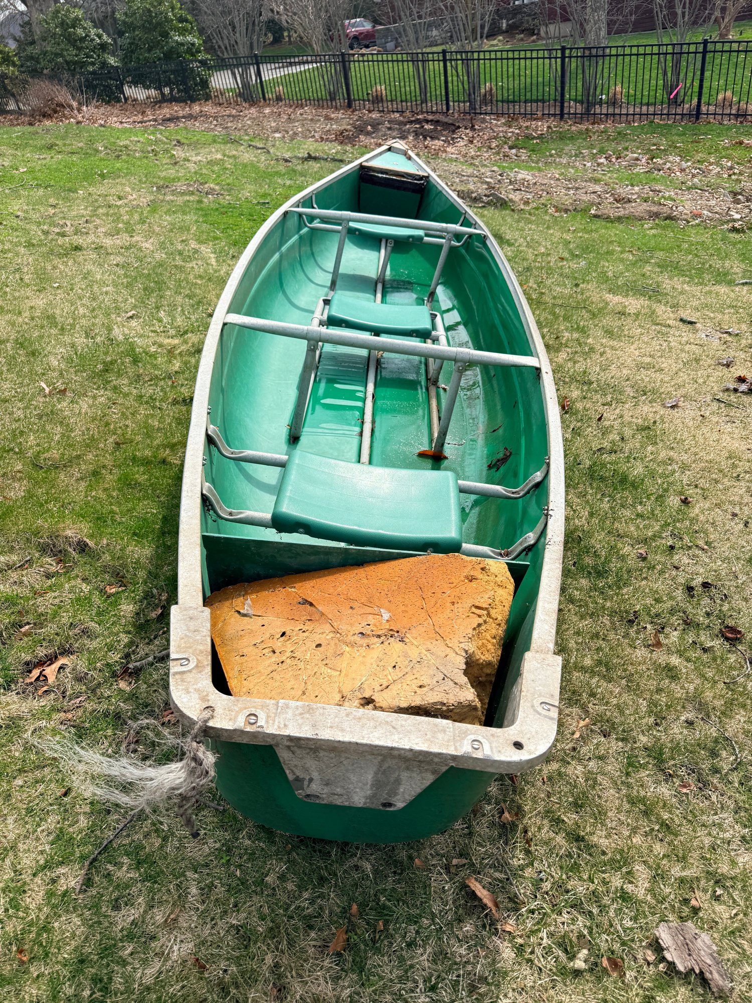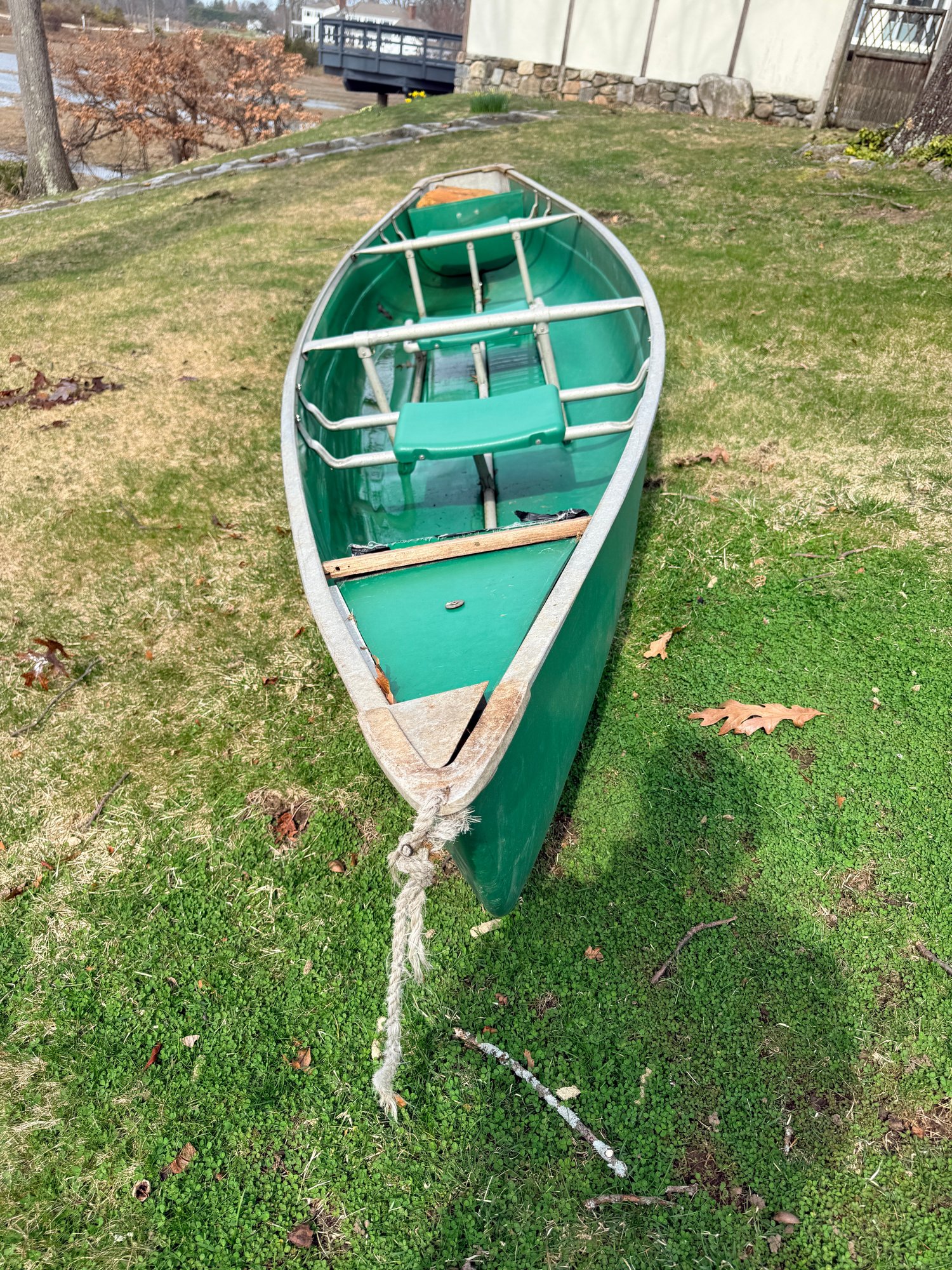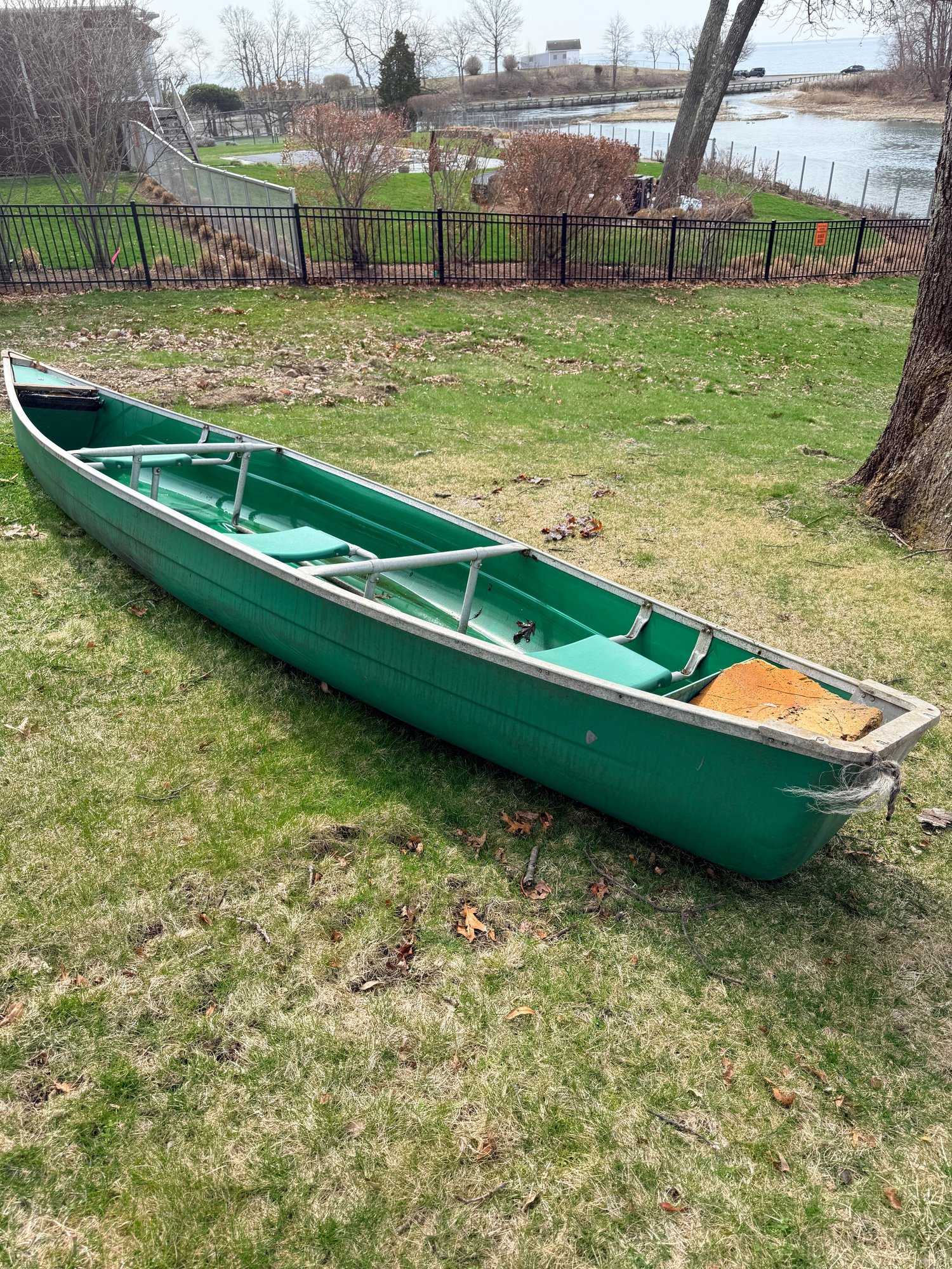 16ft canoe. Needs new foam pieces for back and front. Does NOT come with paddles or oars.