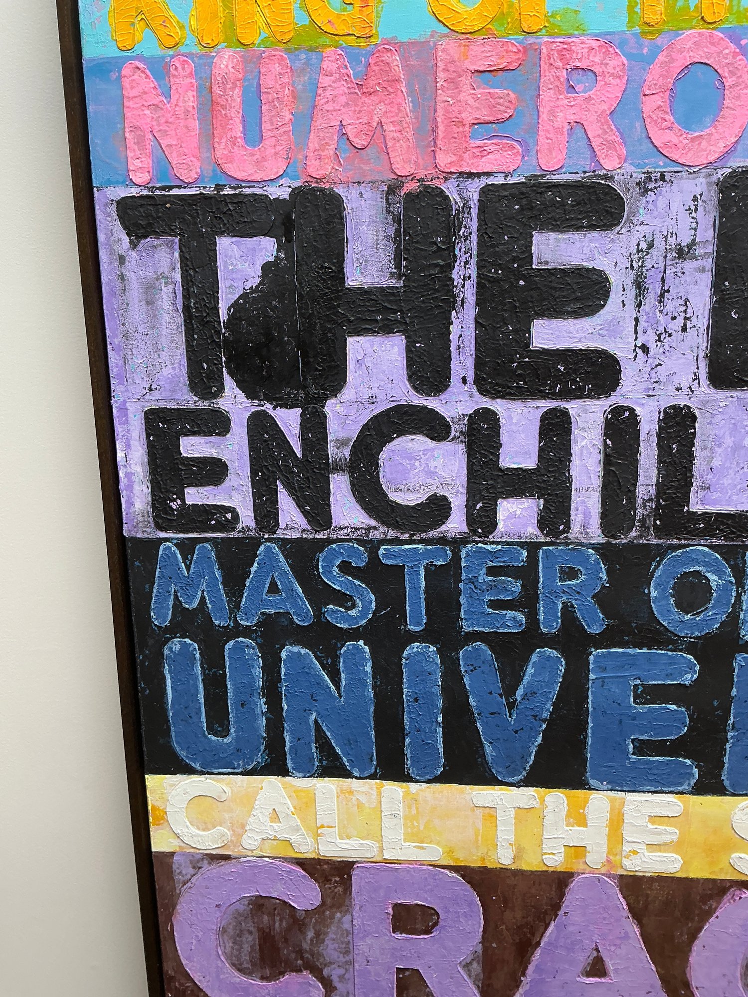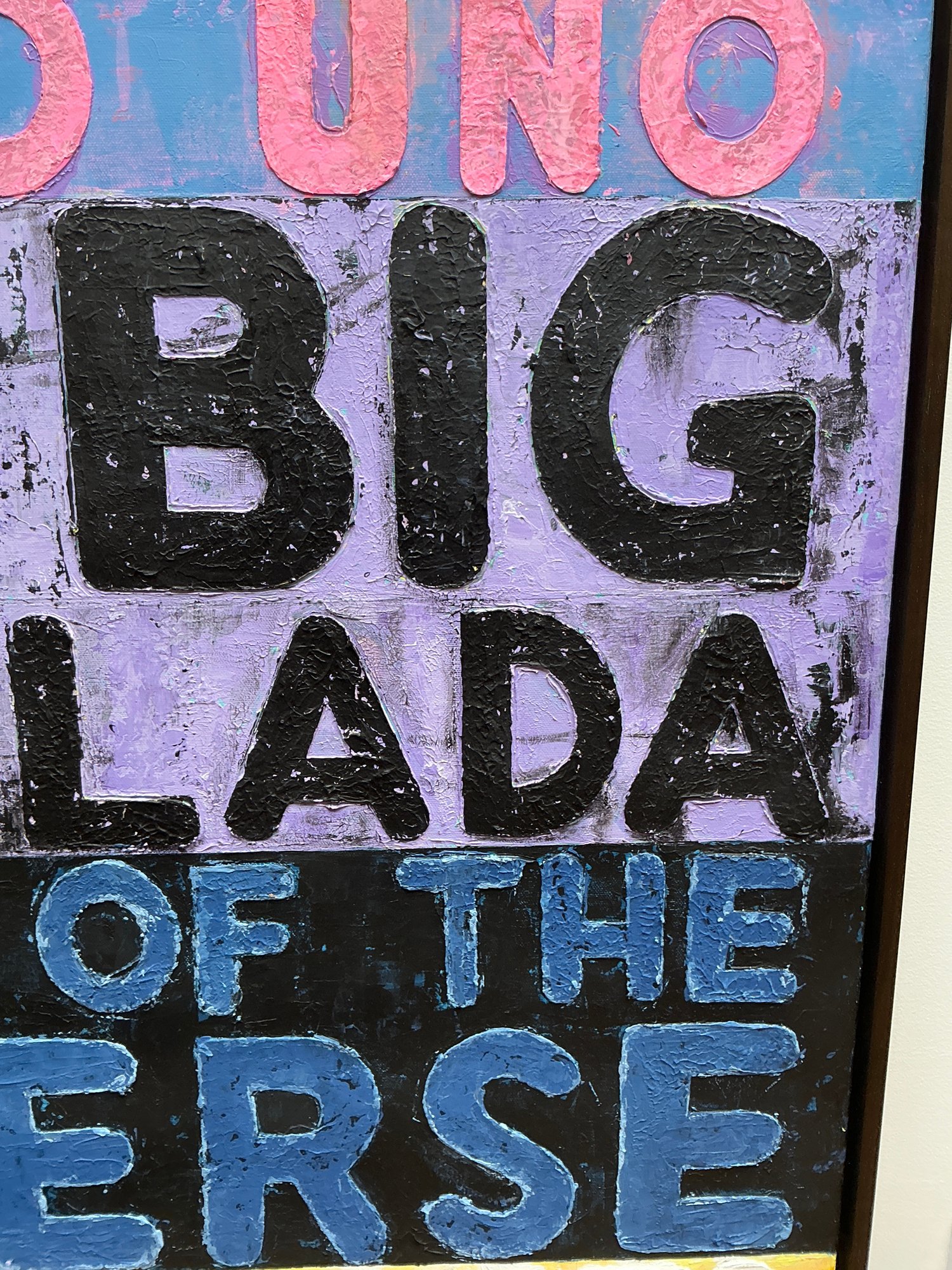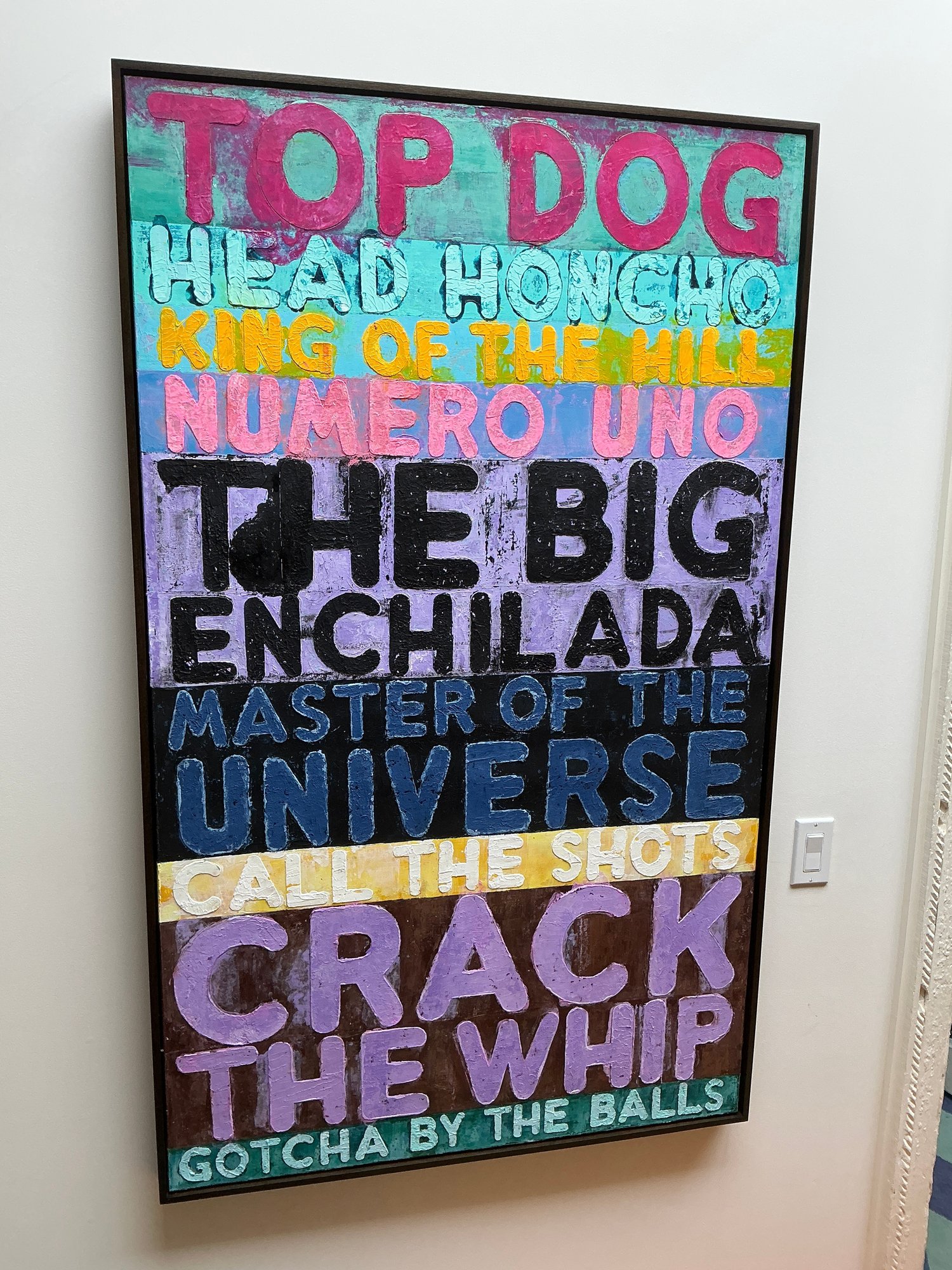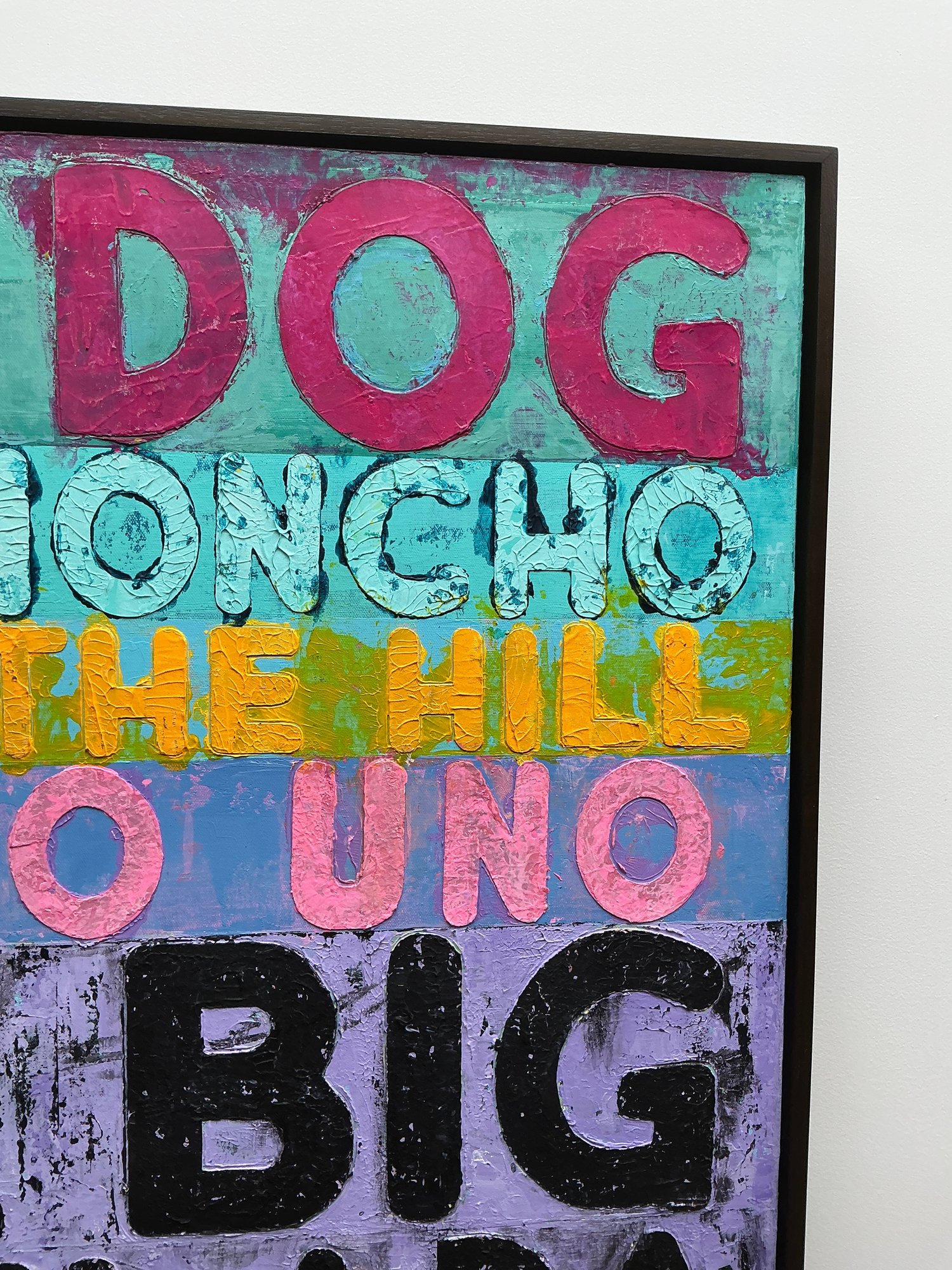Monoprint And Oil On Board. A copy of Mel Bochners art “Top Dog”. Artwork in good condition and measures 37” x 61”.