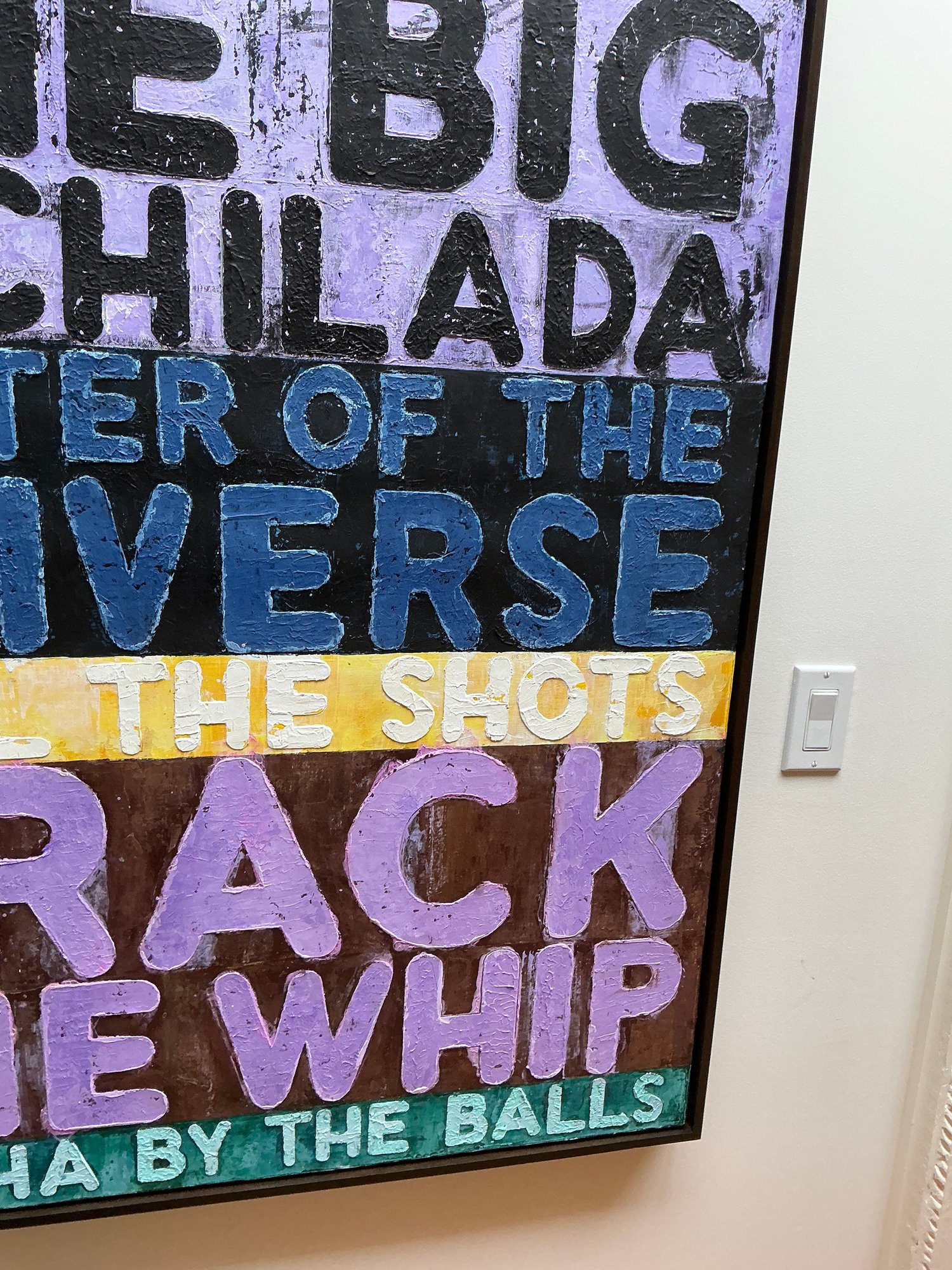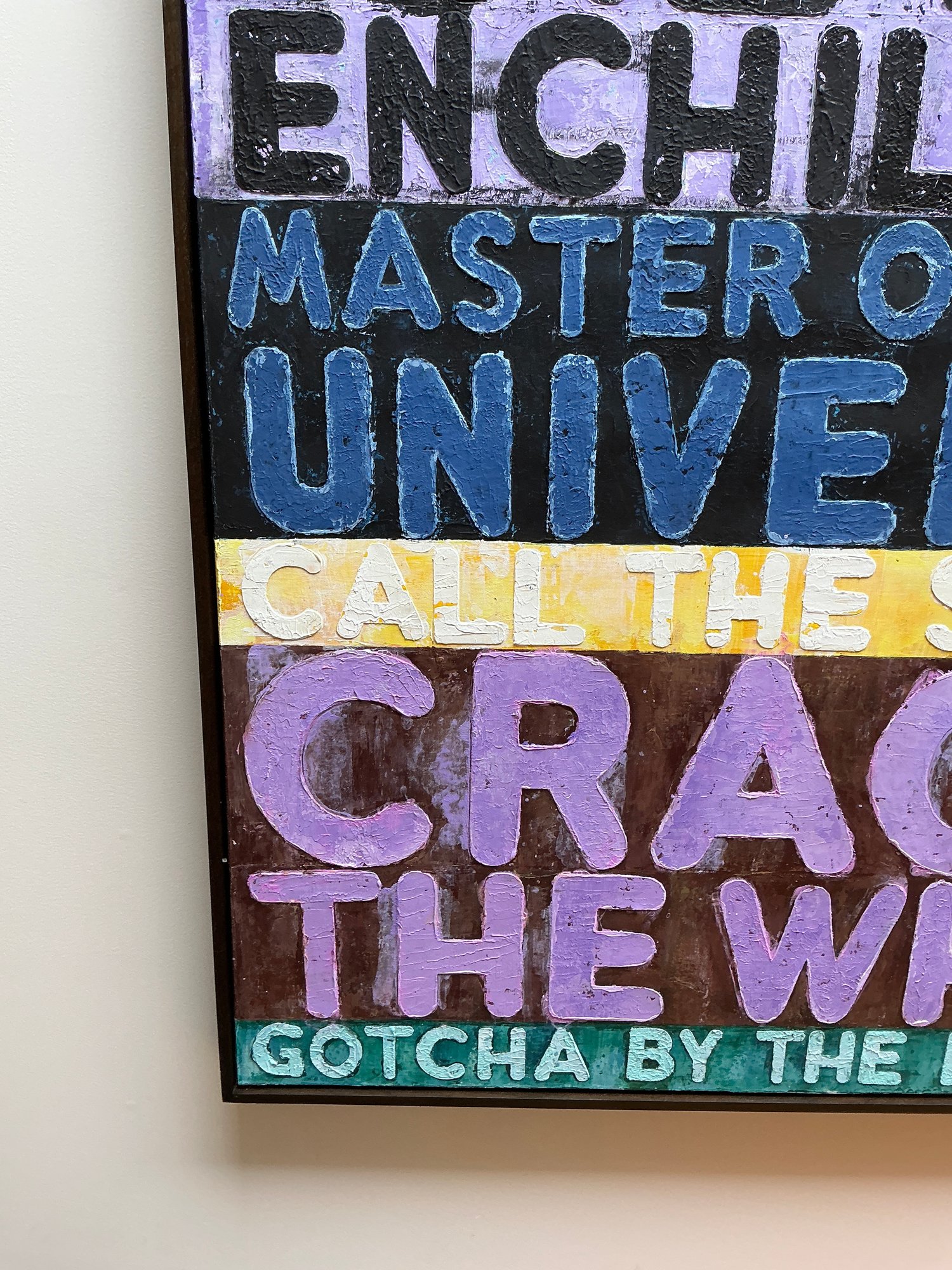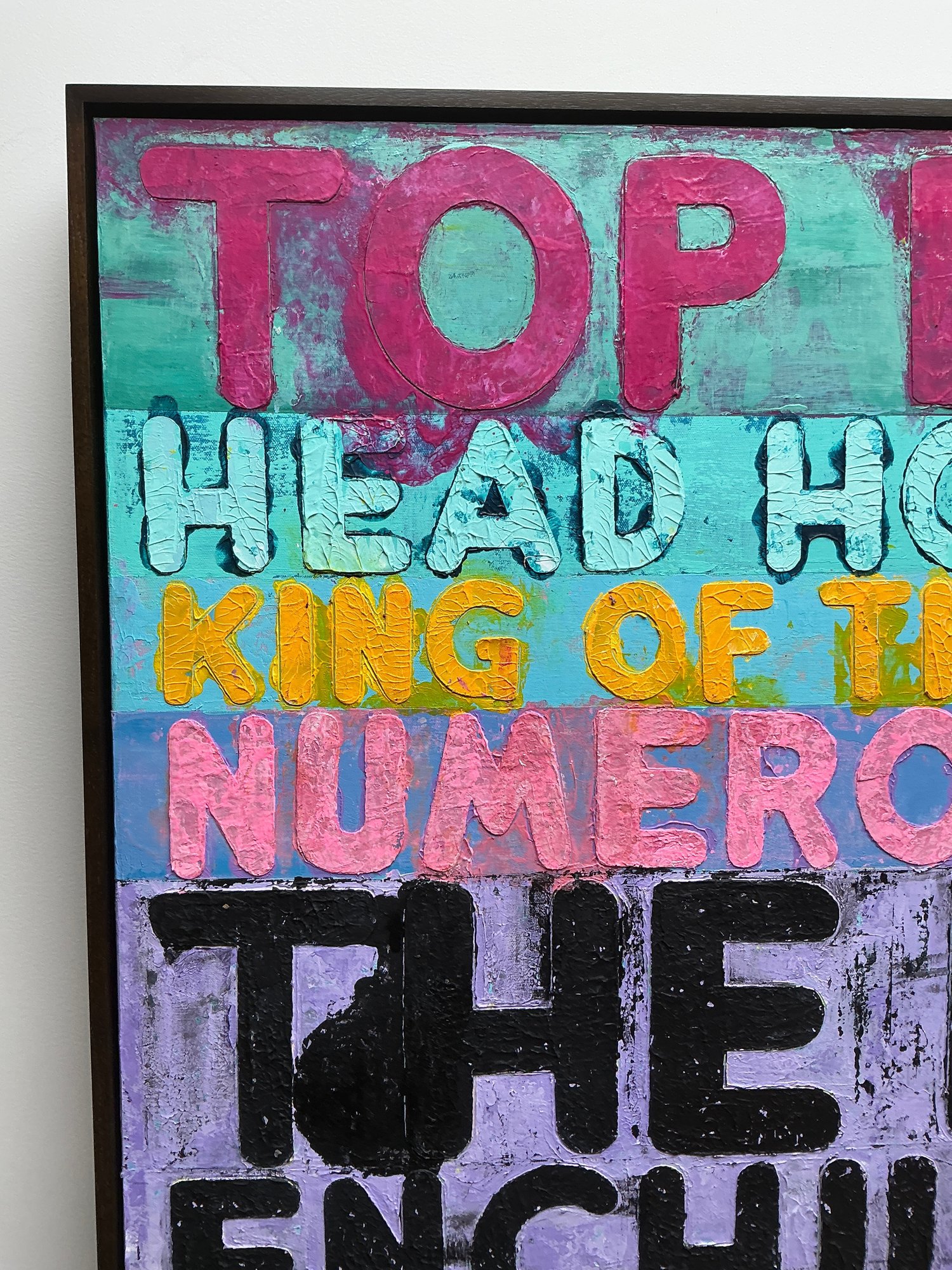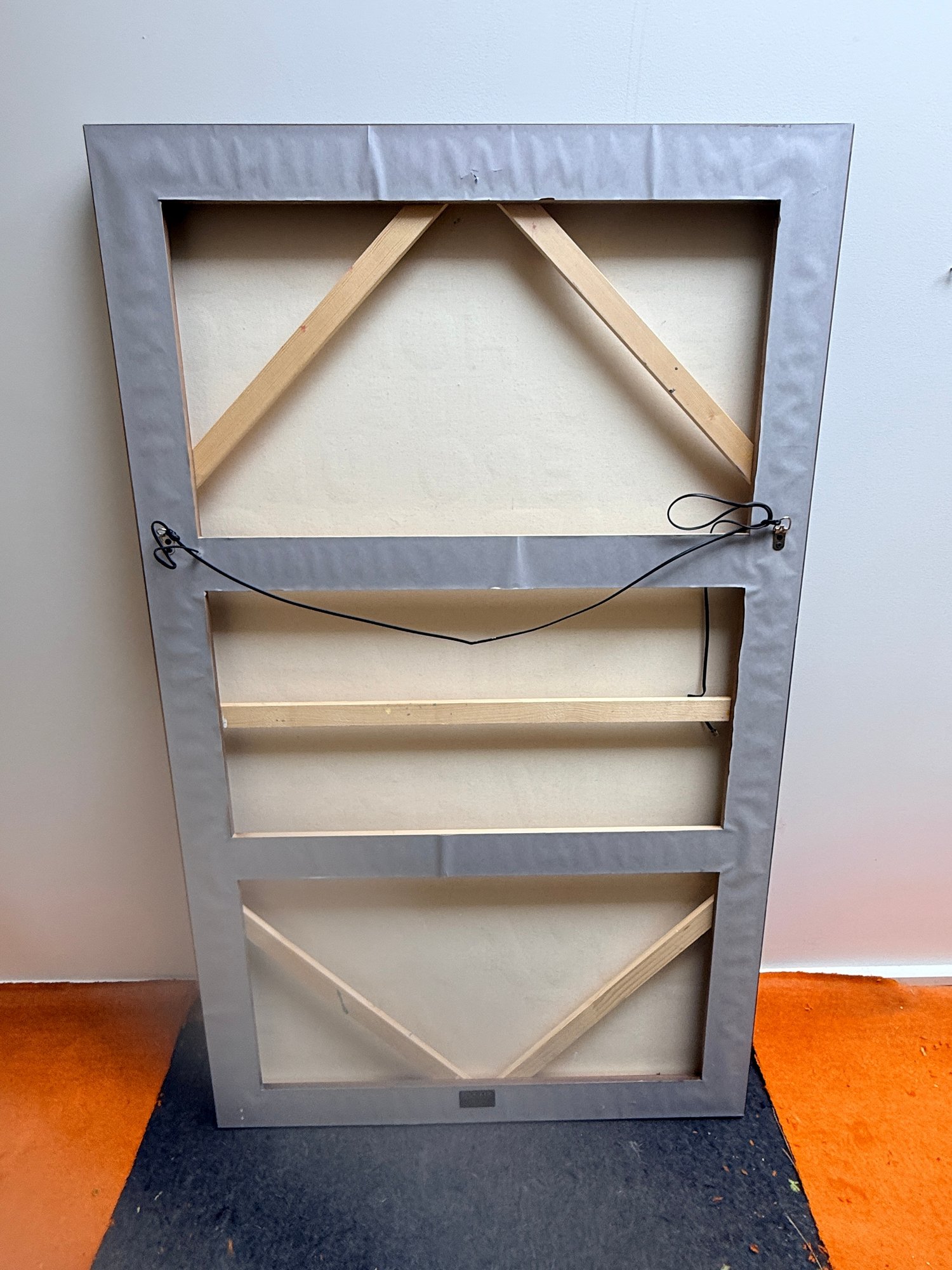 Monoprint And Oil On Board. A copy of Mel Bochners art “Top Dog”. Artwork in good condition and measures 37” x 61”.