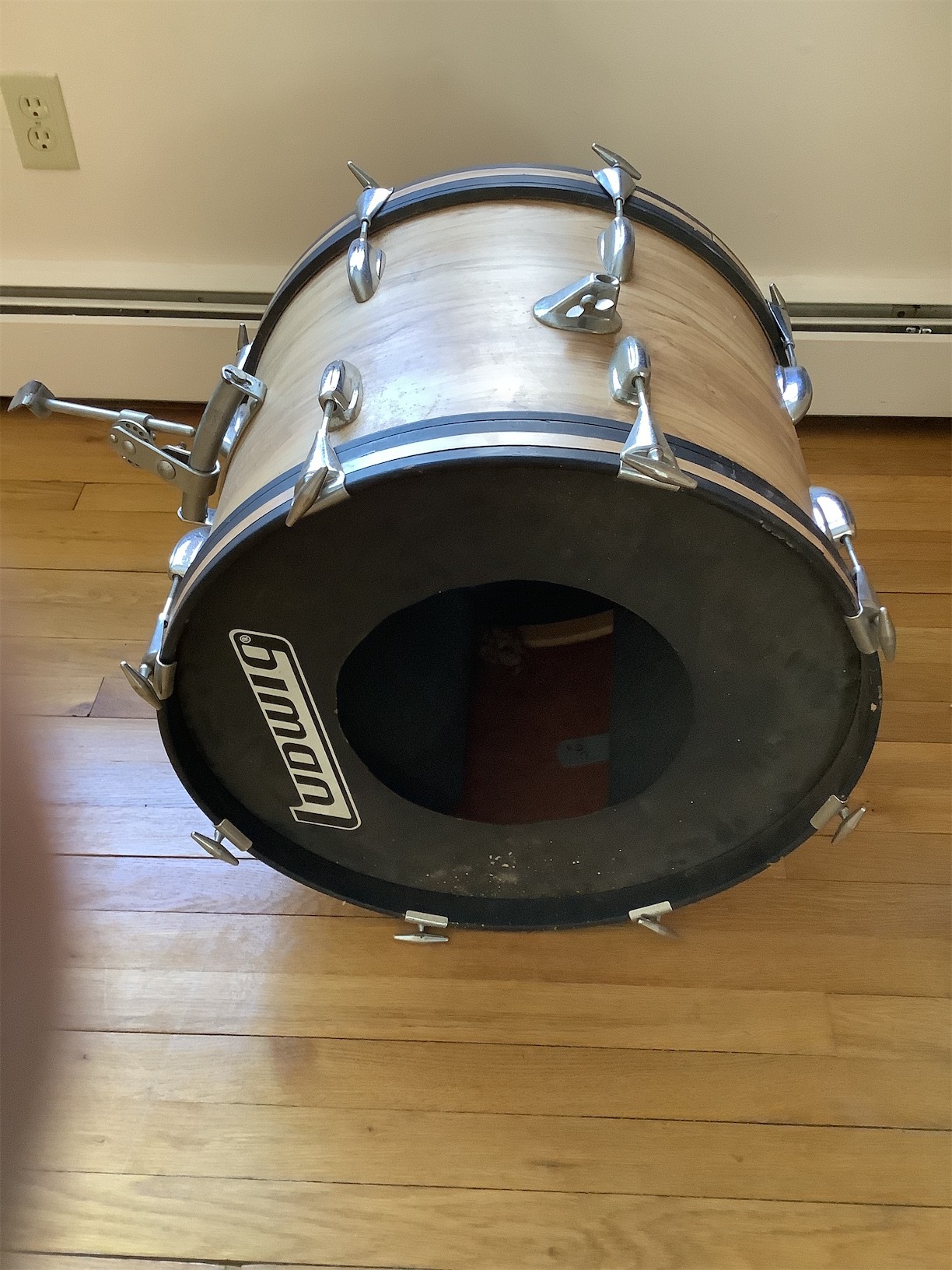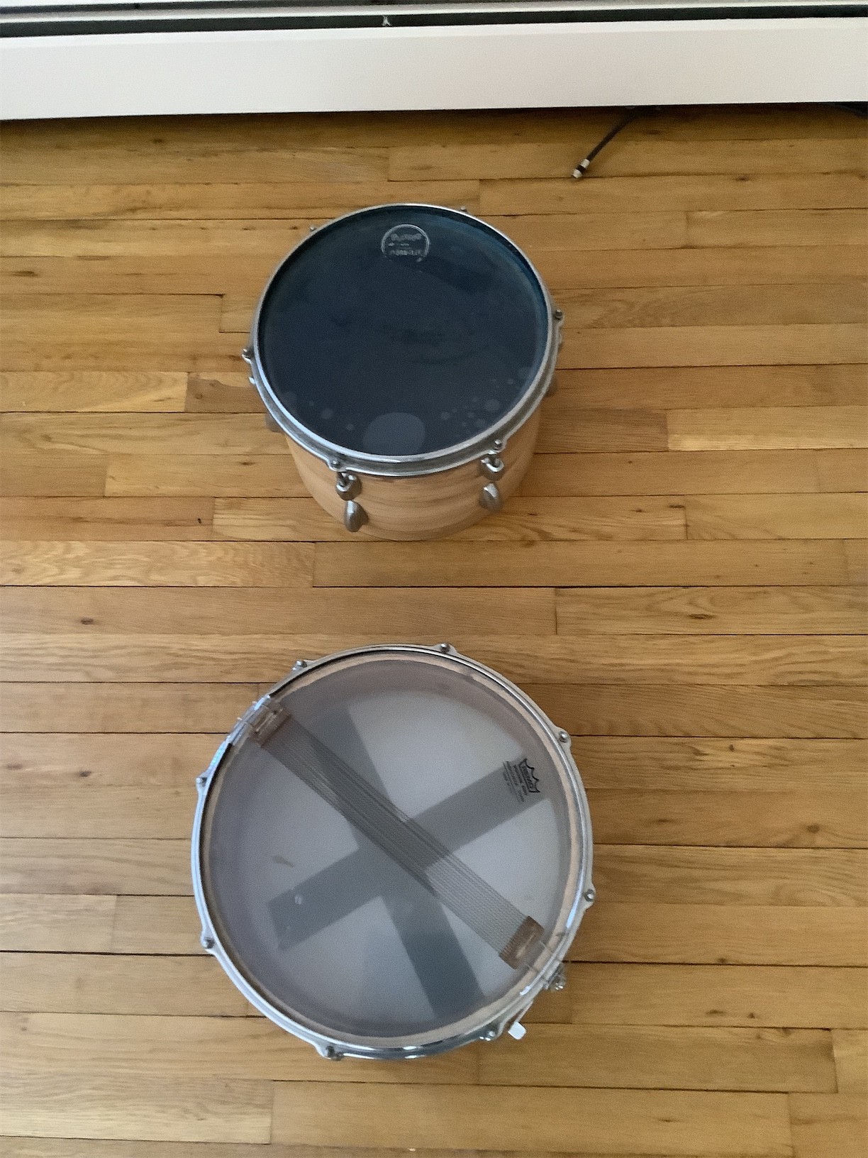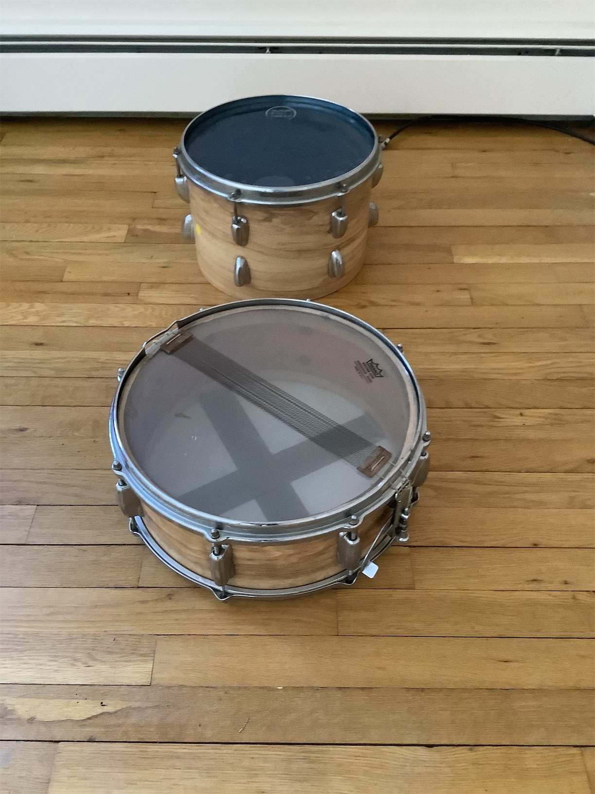 This listing features a set of drums, perfect for both aspiring drummers and seasoned musicians. The collection includes a bass drum and several smaller drums, each showcasing a classic wood finish that adds warmth to any setup. The bass drum is equipped with a durable head, offering a rich sound quality. The smaller drums feature transparent heads, providing a sleek aesthetic while allowing resonance to shine through. All drums are designed with standard hardware, making them easy to integrate into any drum kit. Whether you're looking to expand your current setup or starting fresh, this versatile set offers great potential for performance and practice.