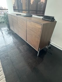 Altan Wood Cabinet. Continuous hand-matched Guanacaste veneers creating striking natural flow not he front doors of this cabinet. 72 x 17.5 x 30