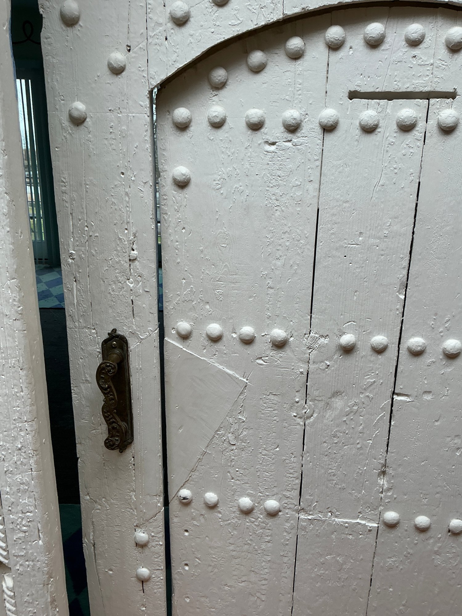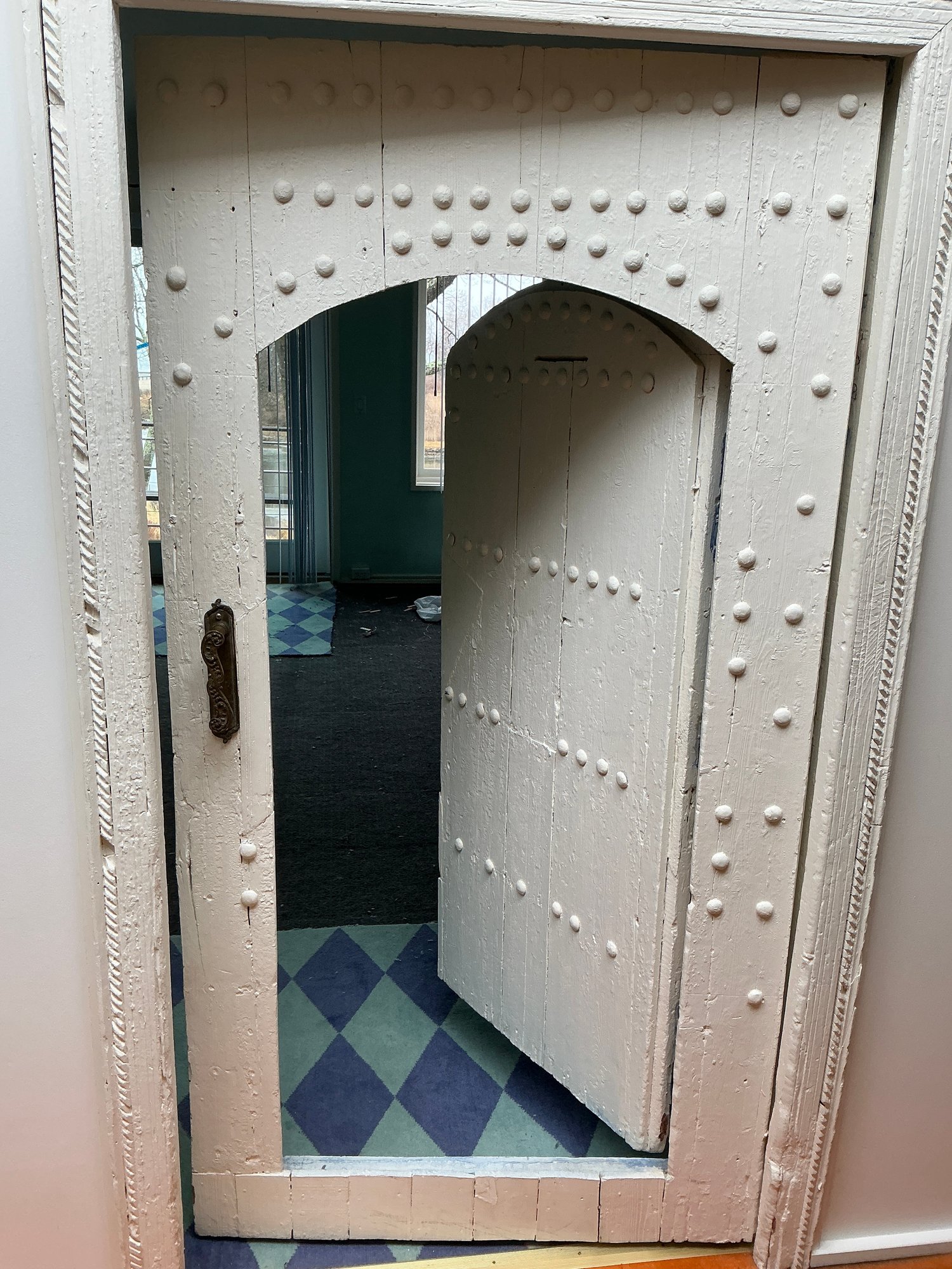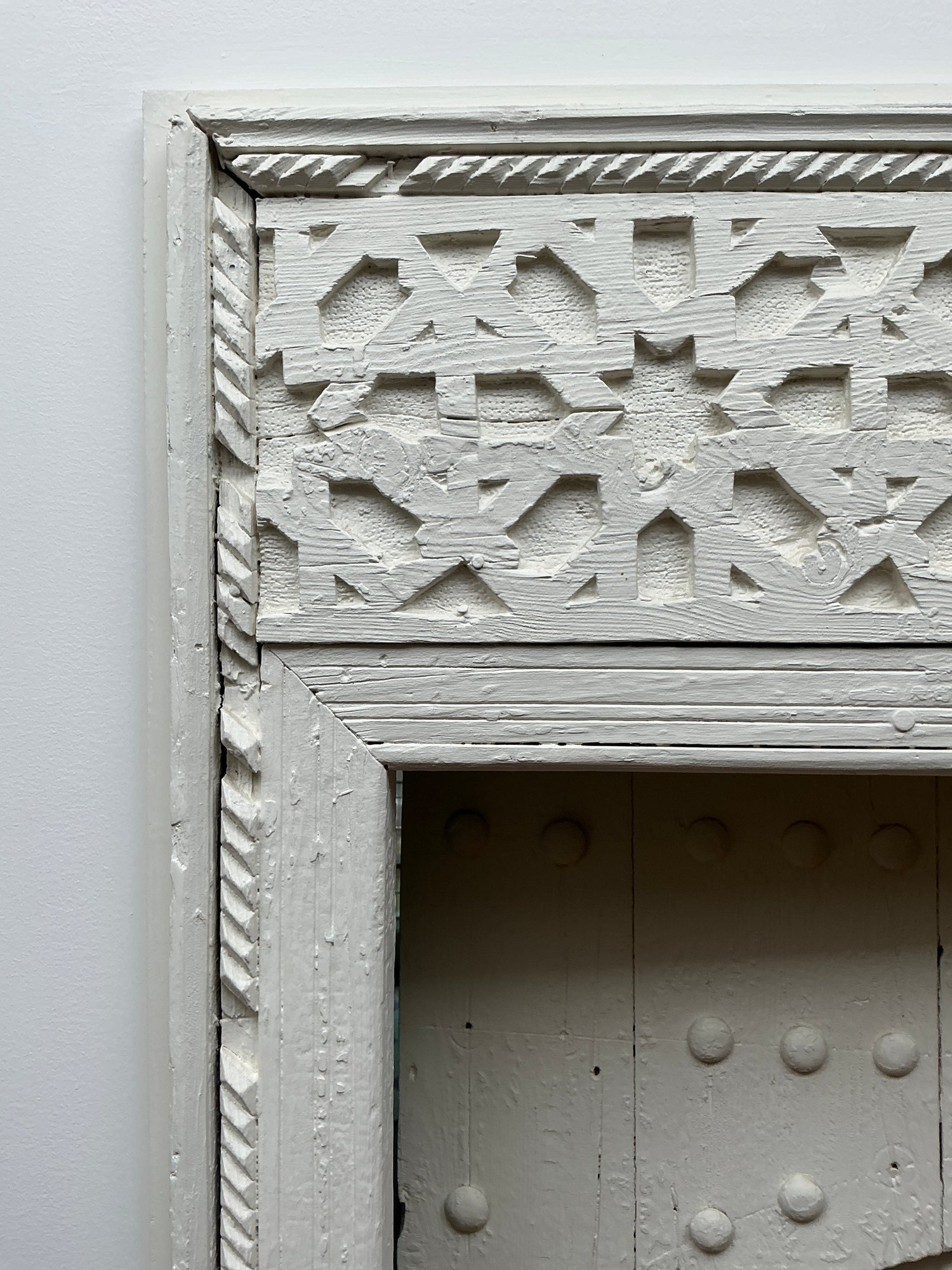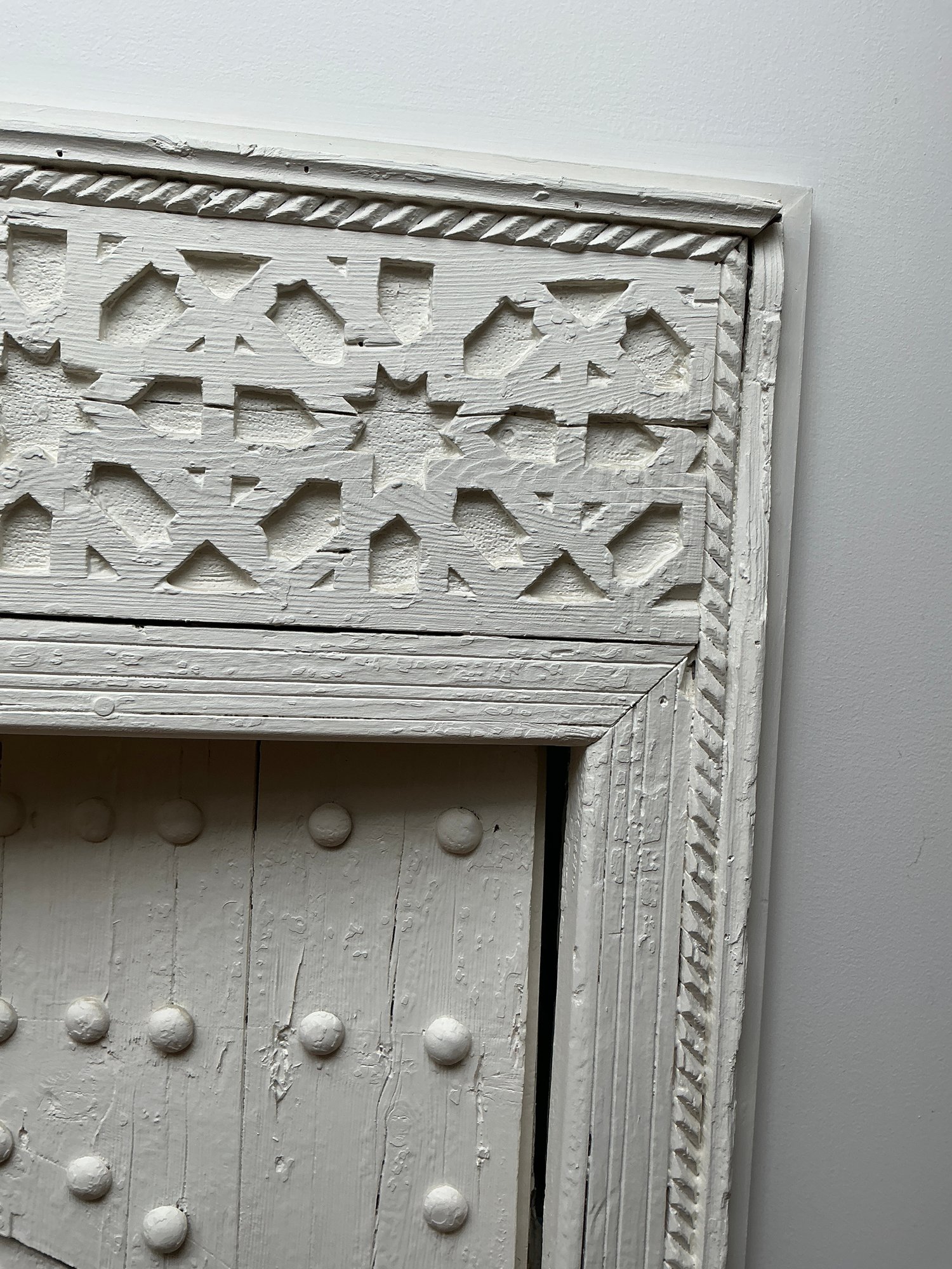 Hand Carved Wooden Moroccan Double Door. Double door includes frame and measures 92” H x 76” W. In good condition.
