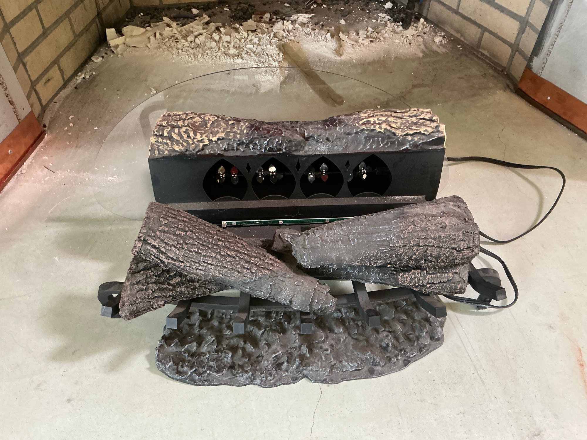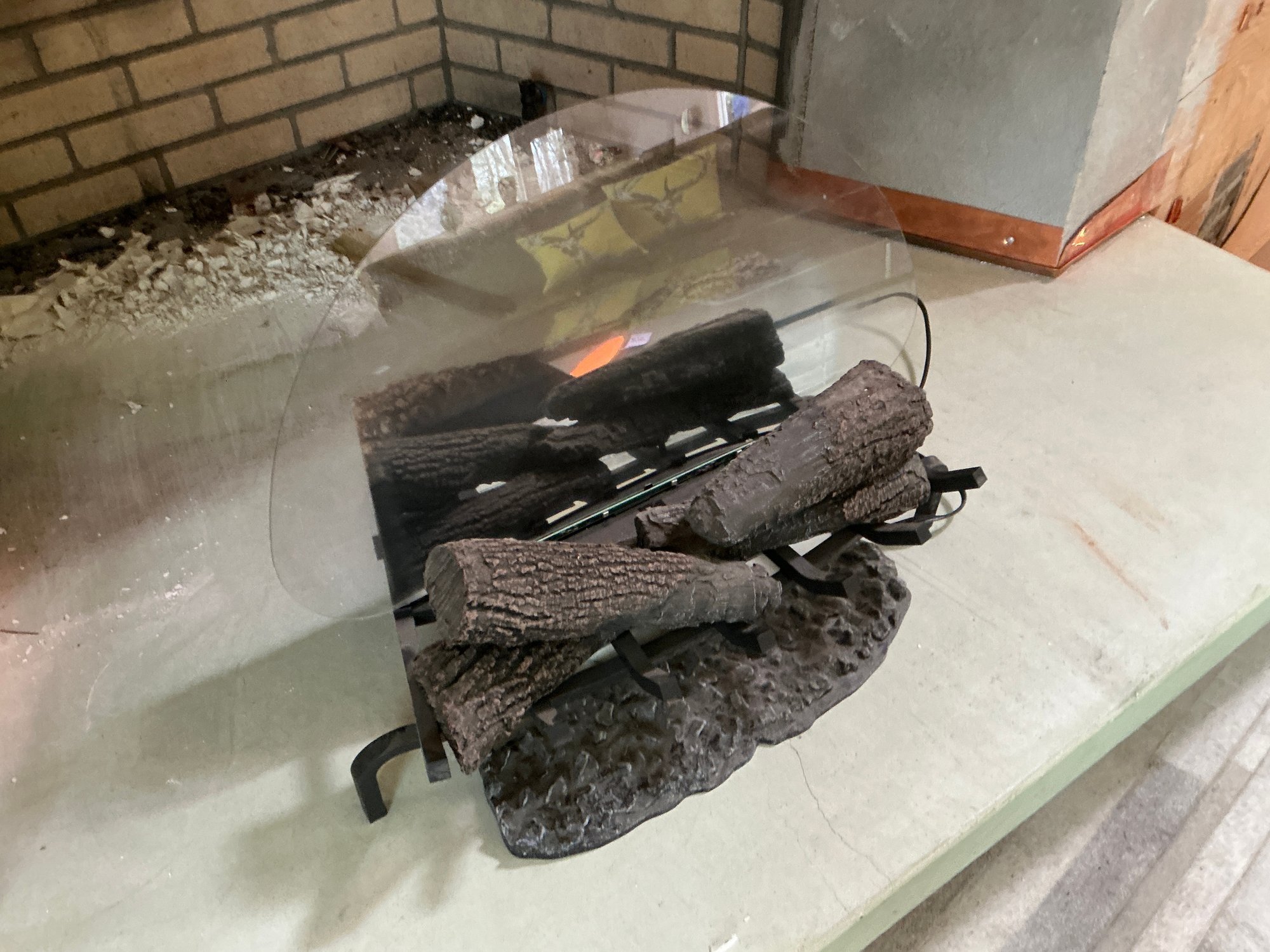 Plastic Electric Fireplace Logs Insert With Plastic Shield. Measures 25” x 15”.