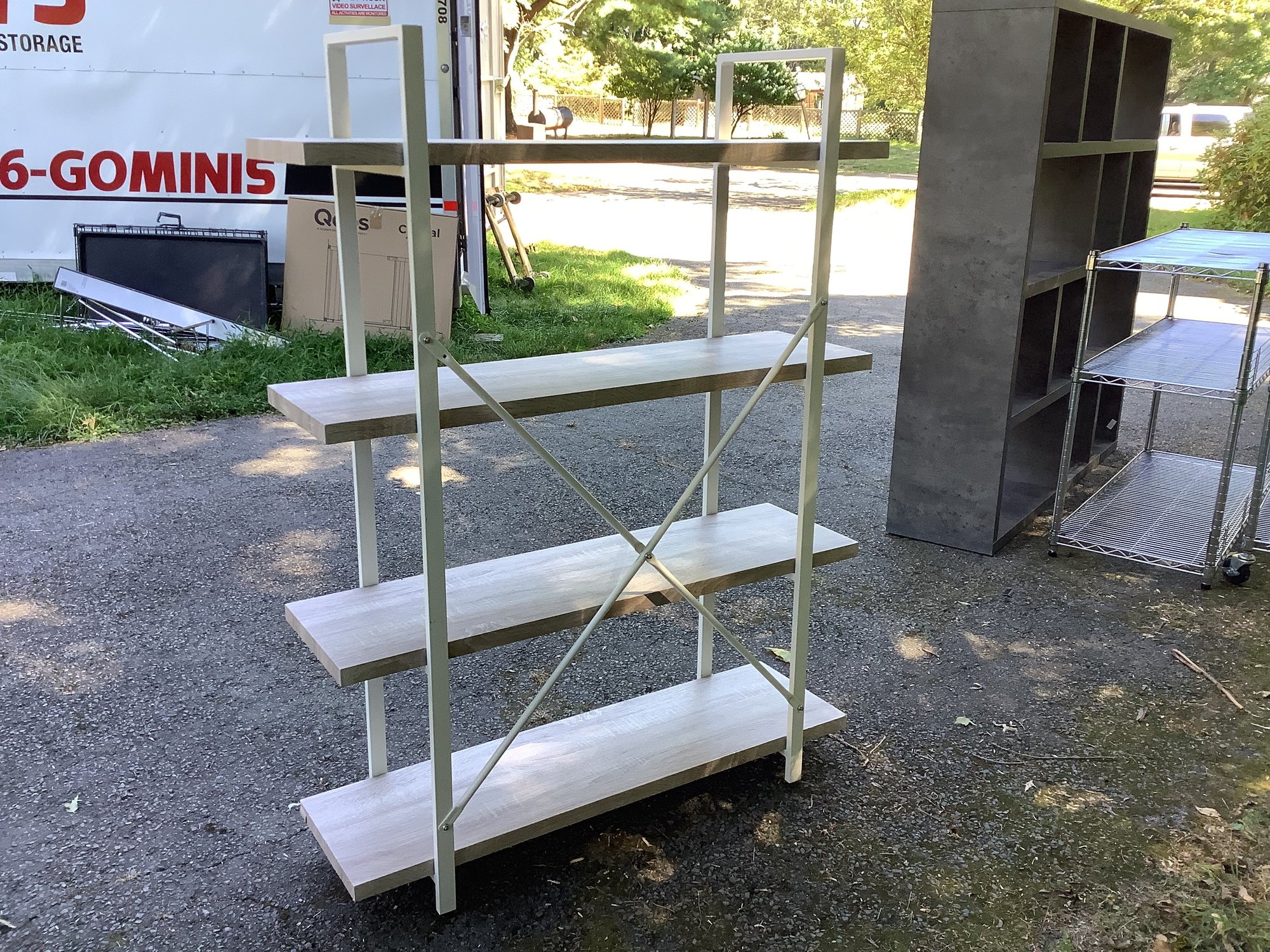 Shelving Unit with white metal sides