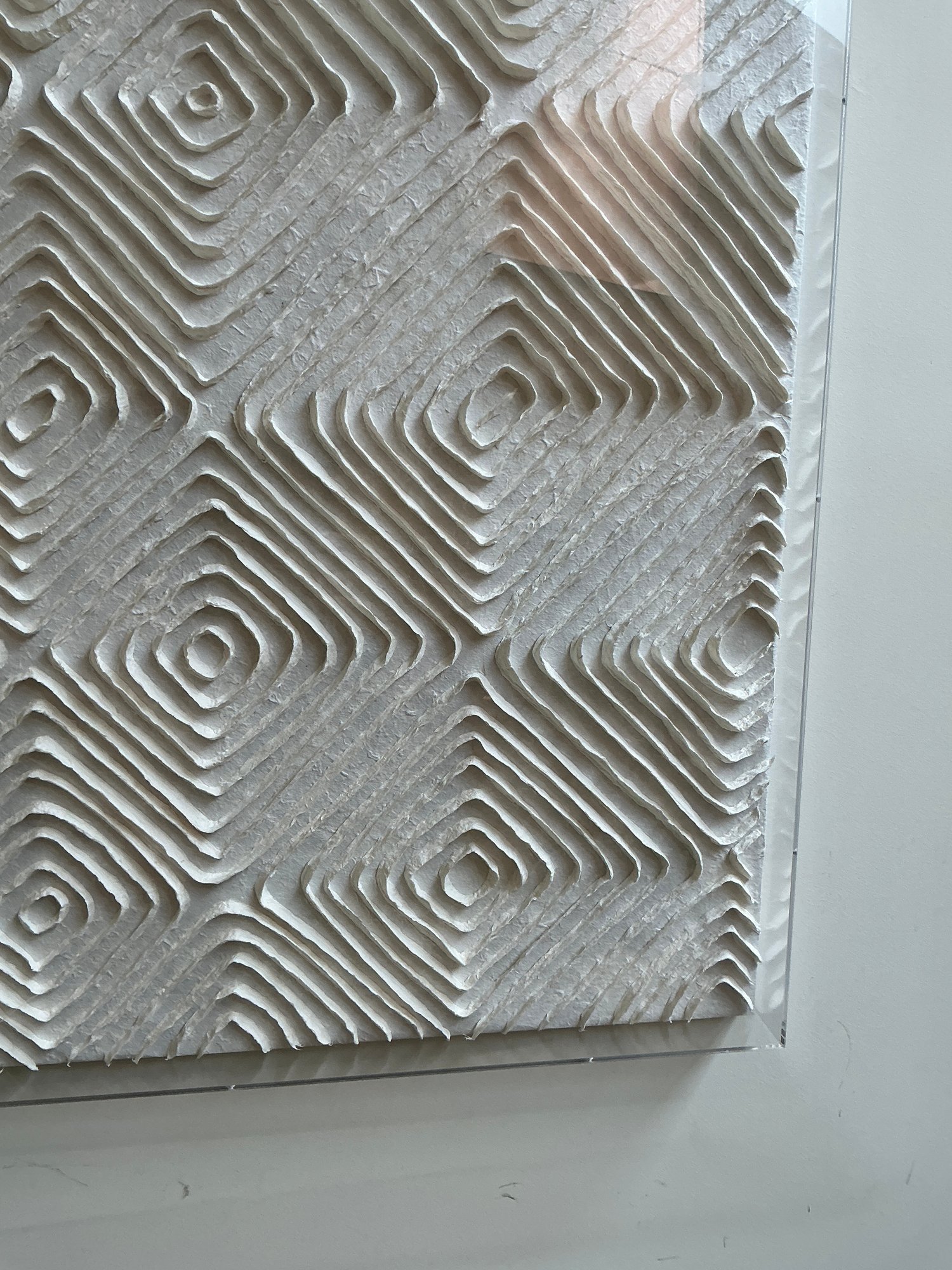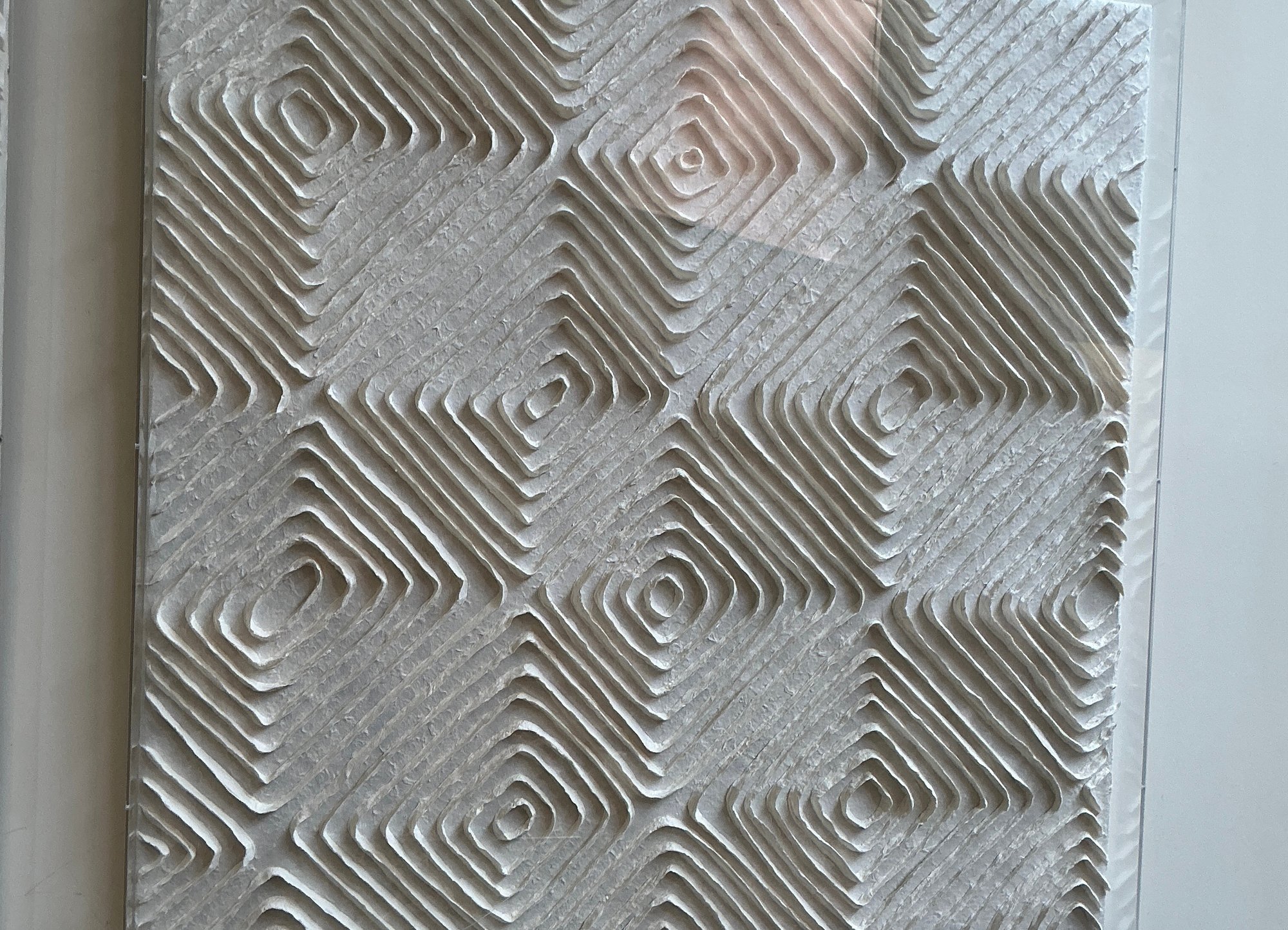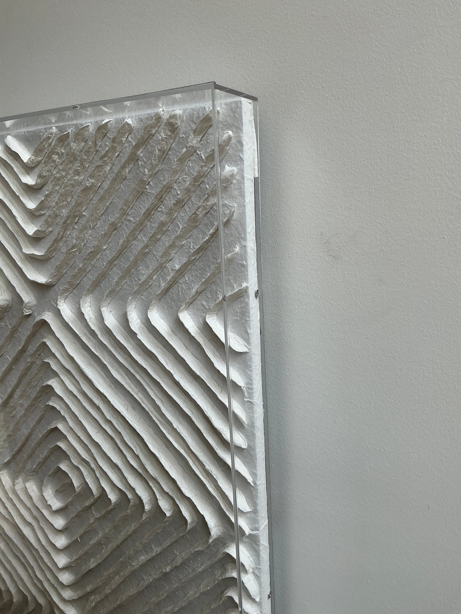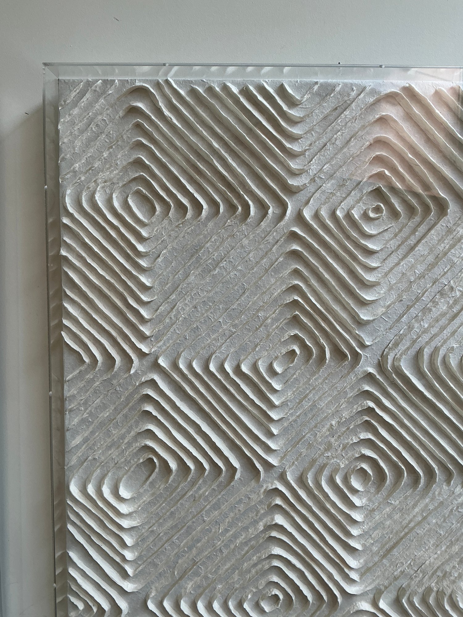 Wall Art With Textured Checkerboard Design framed in a lucite box. Artwork is in great condition and measures 30” x30”.