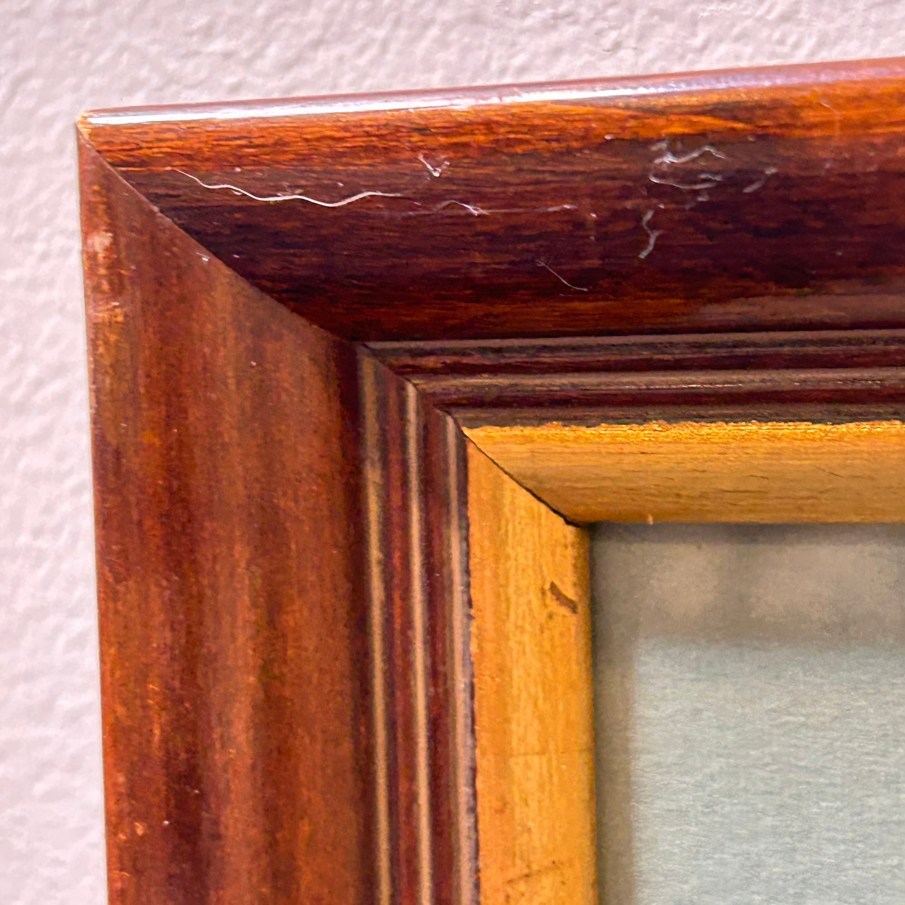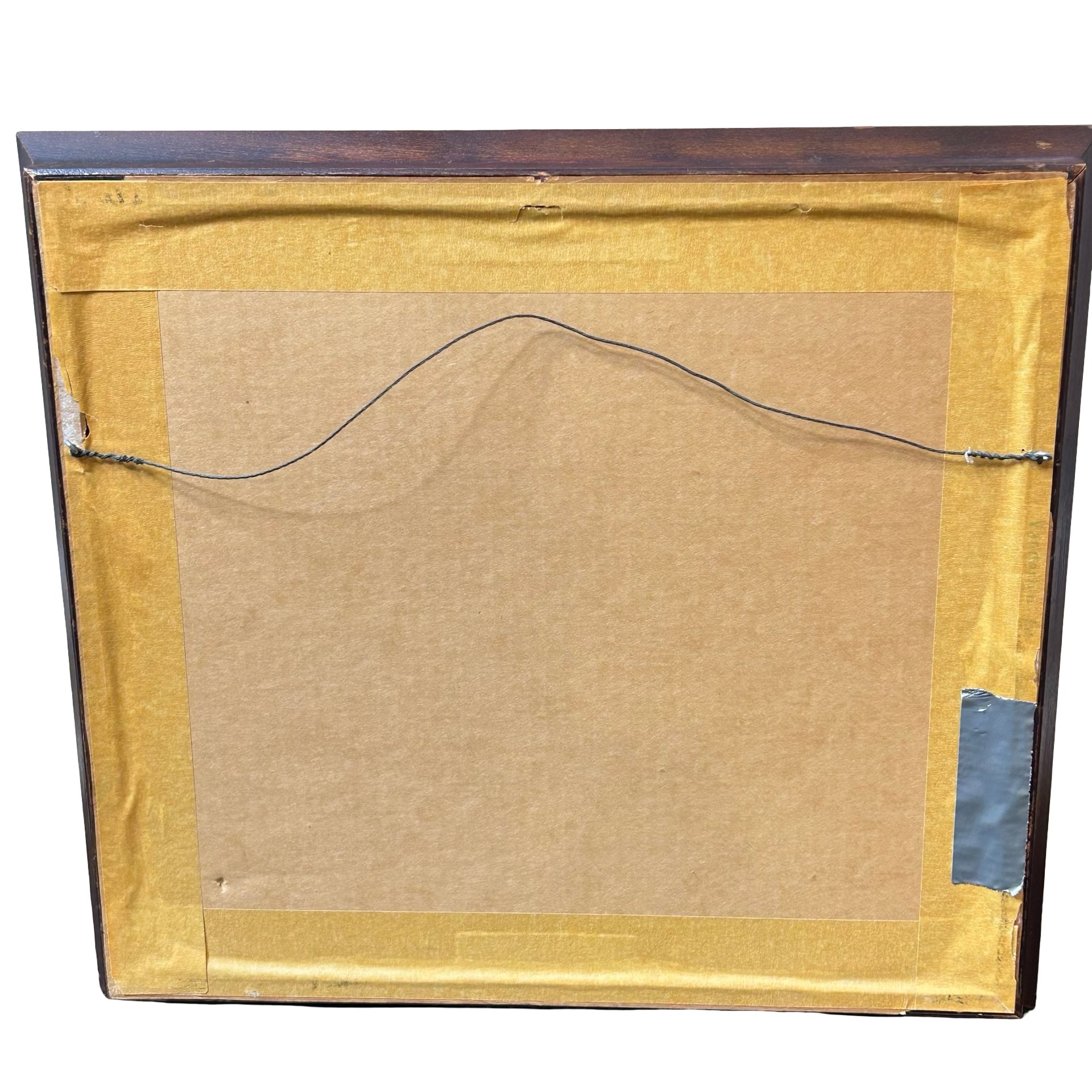This listing is for a previously owned framed piece of art. The artwork is presented in a frame and is ready to hang. It shows normal signs of age and use consistent with a pre-owned item. Please review photos carefully for condition details, as they are part of the description.