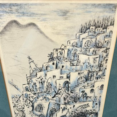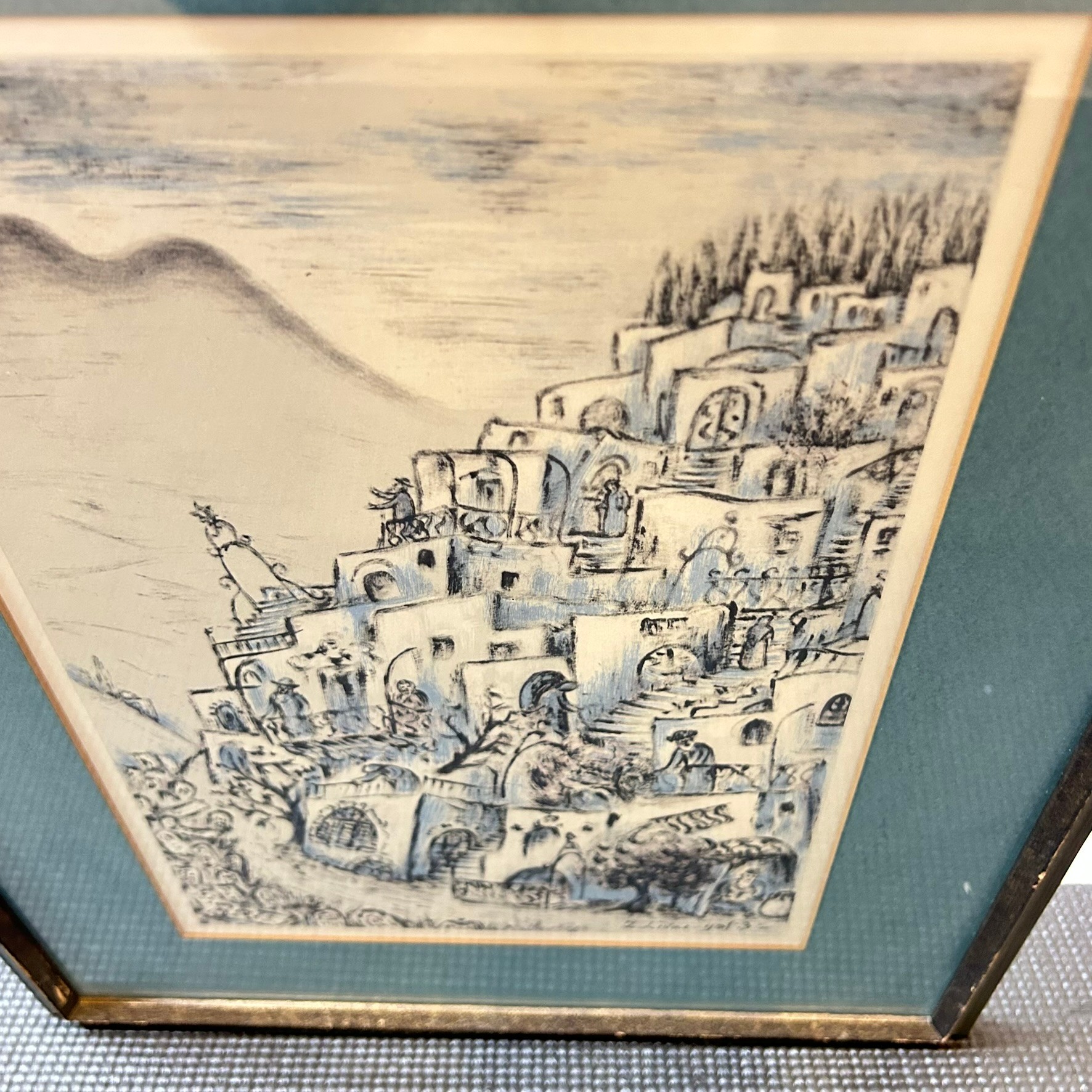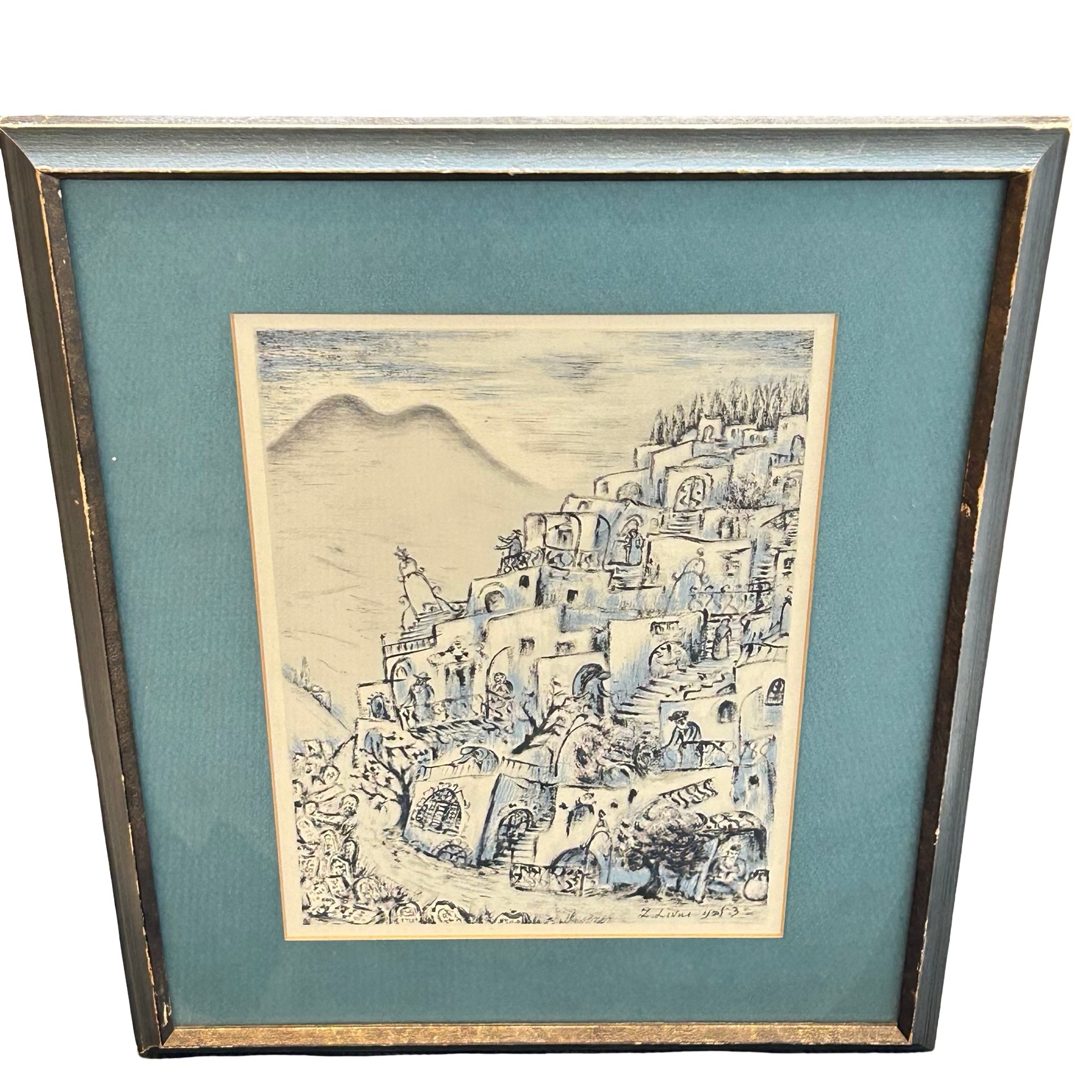 This listing is for a previously owned framed piece of art. The artwork is presented in a frame and is ready to hang. It shows normal signs of age and use consistent with a pre-owned item. Please review photos carefully for condition details, as they are part of the description.