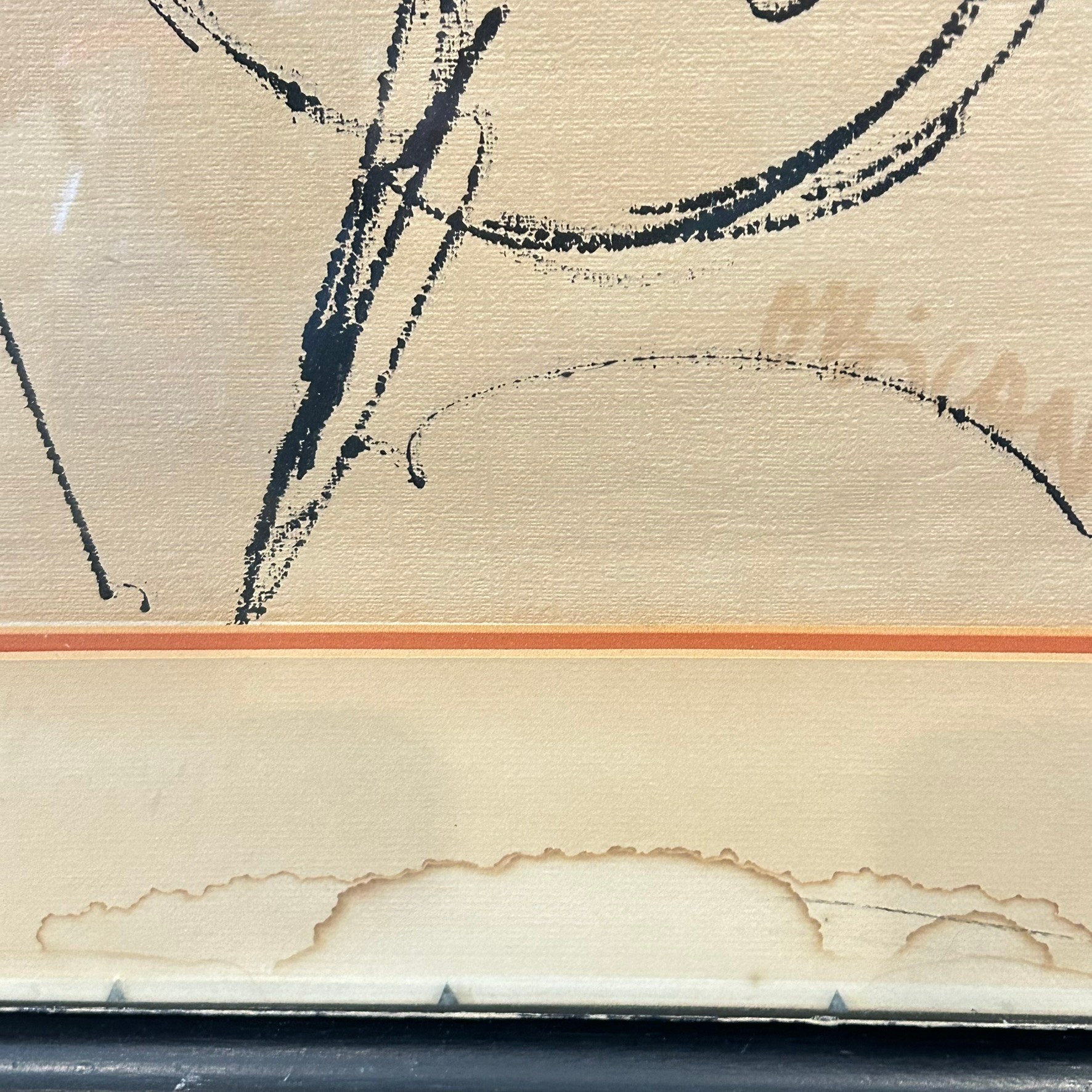 This listing is for a previously owned framed piece of art. The artwork is presented in a frame and is ready to hang. It shows normal signs of age and use consistent with a pre-owned item. Please review photos carefully for condition details, as they are part of the description.