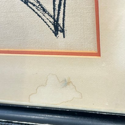 The artwork is matted, framed and under glass. Shows signs of water staining on the bottom matting. Please refer to the close-up photos for detailed condition.