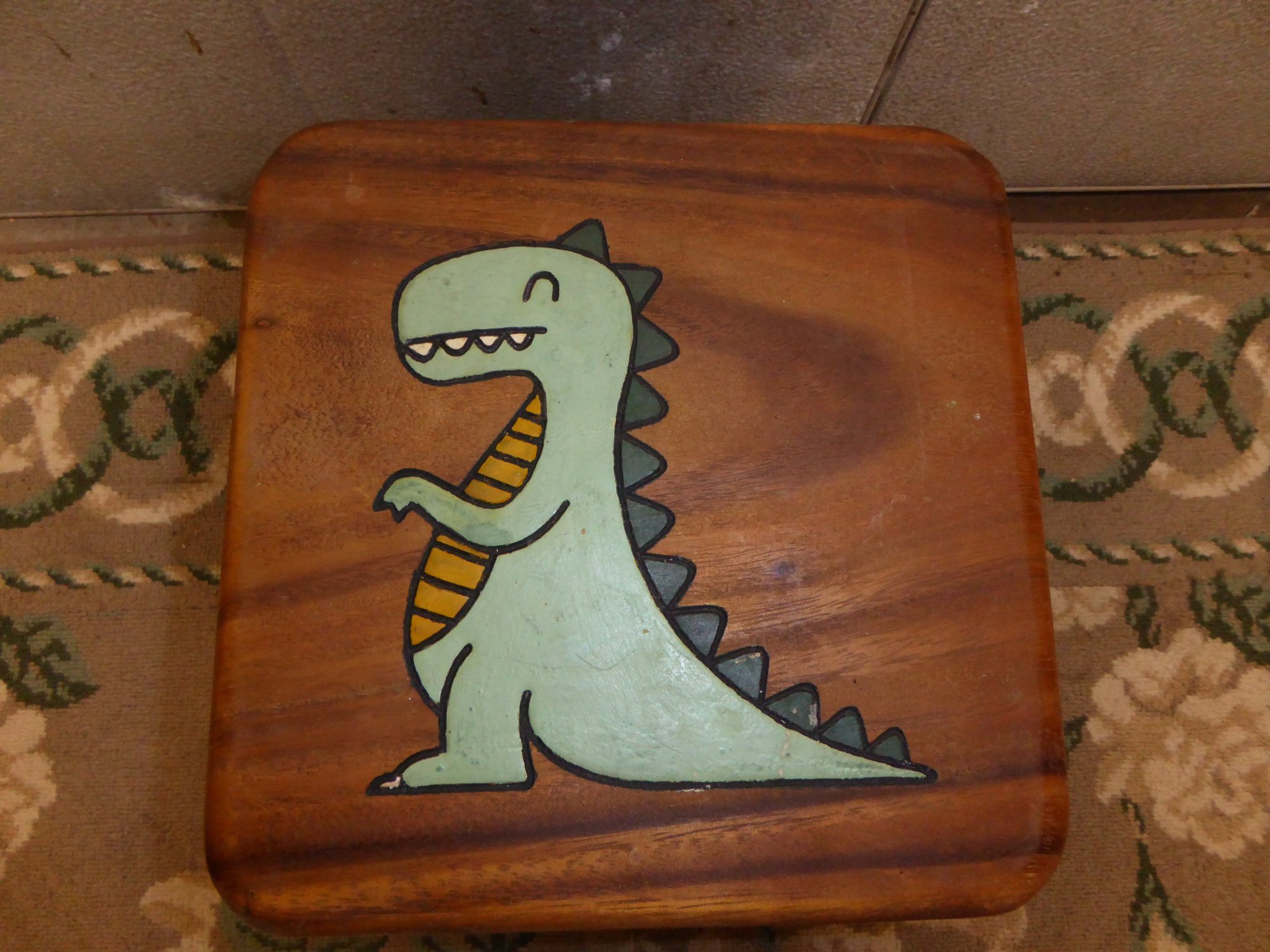 10-Inch Wooden Stepstool With Green Dinosaur