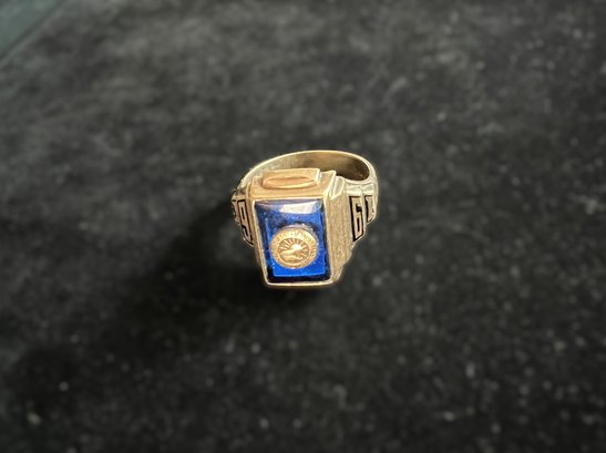 Wonderful vintage 10k yellow gold Frank Scott Bunnell High School of Stratford, CT 1961 class ring, engraved on the inside with the initials TSJ.