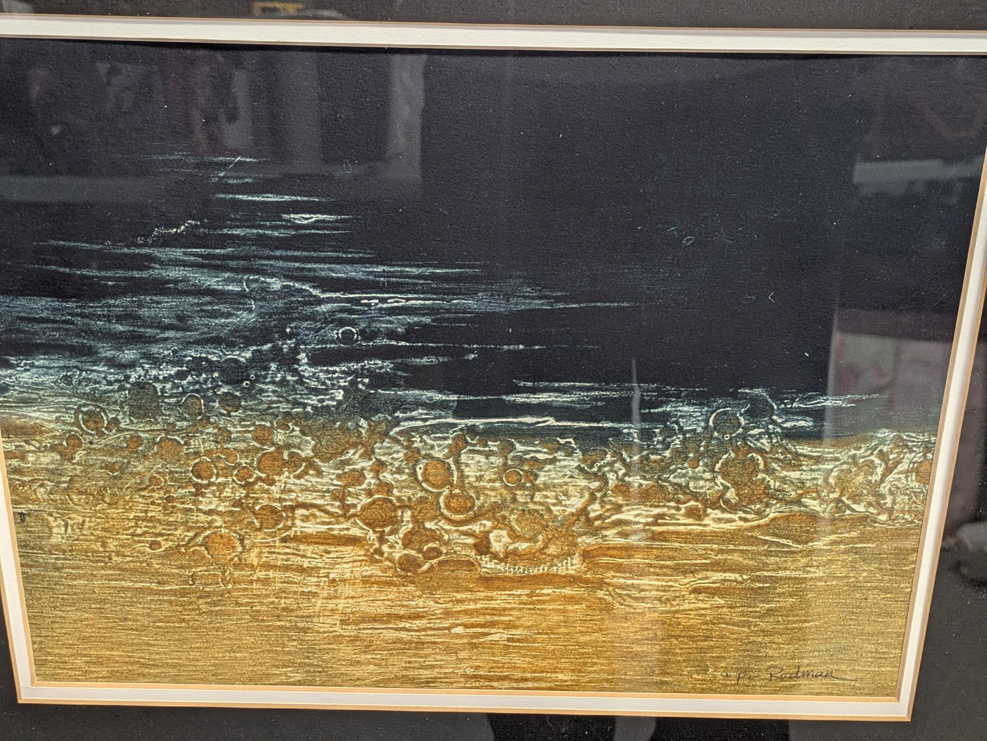 Stunning Detailing and Design. Composed of carbon and silica, Artist Signature in the Lower Right Corner. Framed and Matted in a Gold Composite Frame. Excellent Condition. Please see all photos as part of the description and condition. 21"W x 17"H.