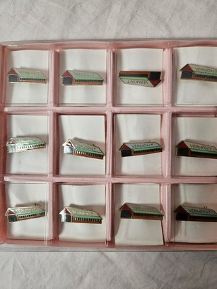 12 Collectible Enamel Vermont Pins Of Covered Bridge