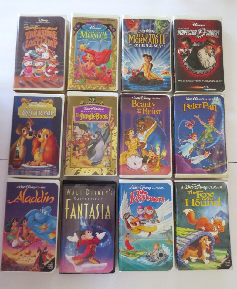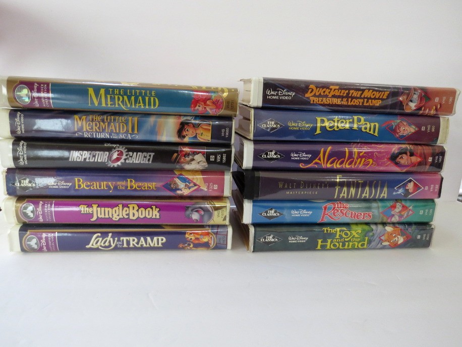This Disney VHS movie lot has 12 of the favorite family classics. All movies are in original cases and have been checked for completeness. Cases show signs of wear.