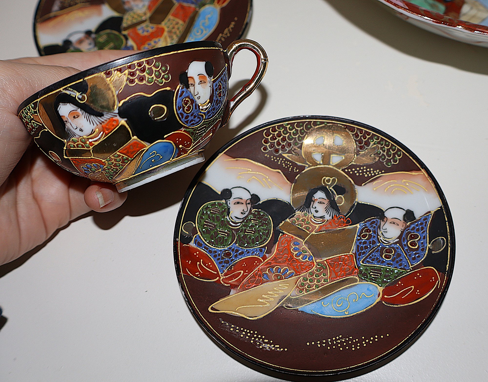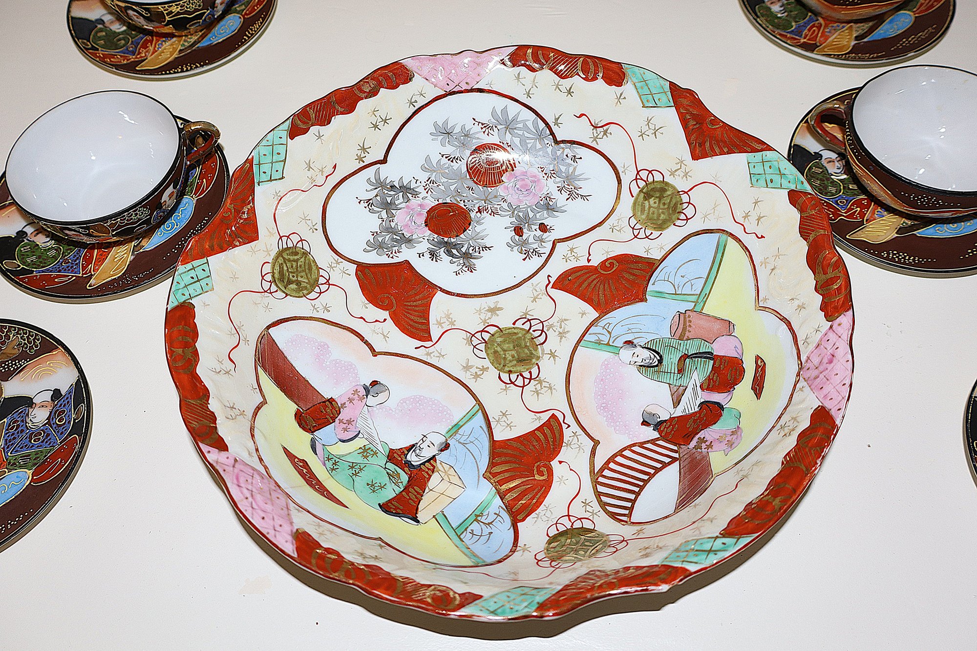 Includes 1 hand painted Kutani bowl, 5 Satsuma teacups, and 6 Satsuma Saucers