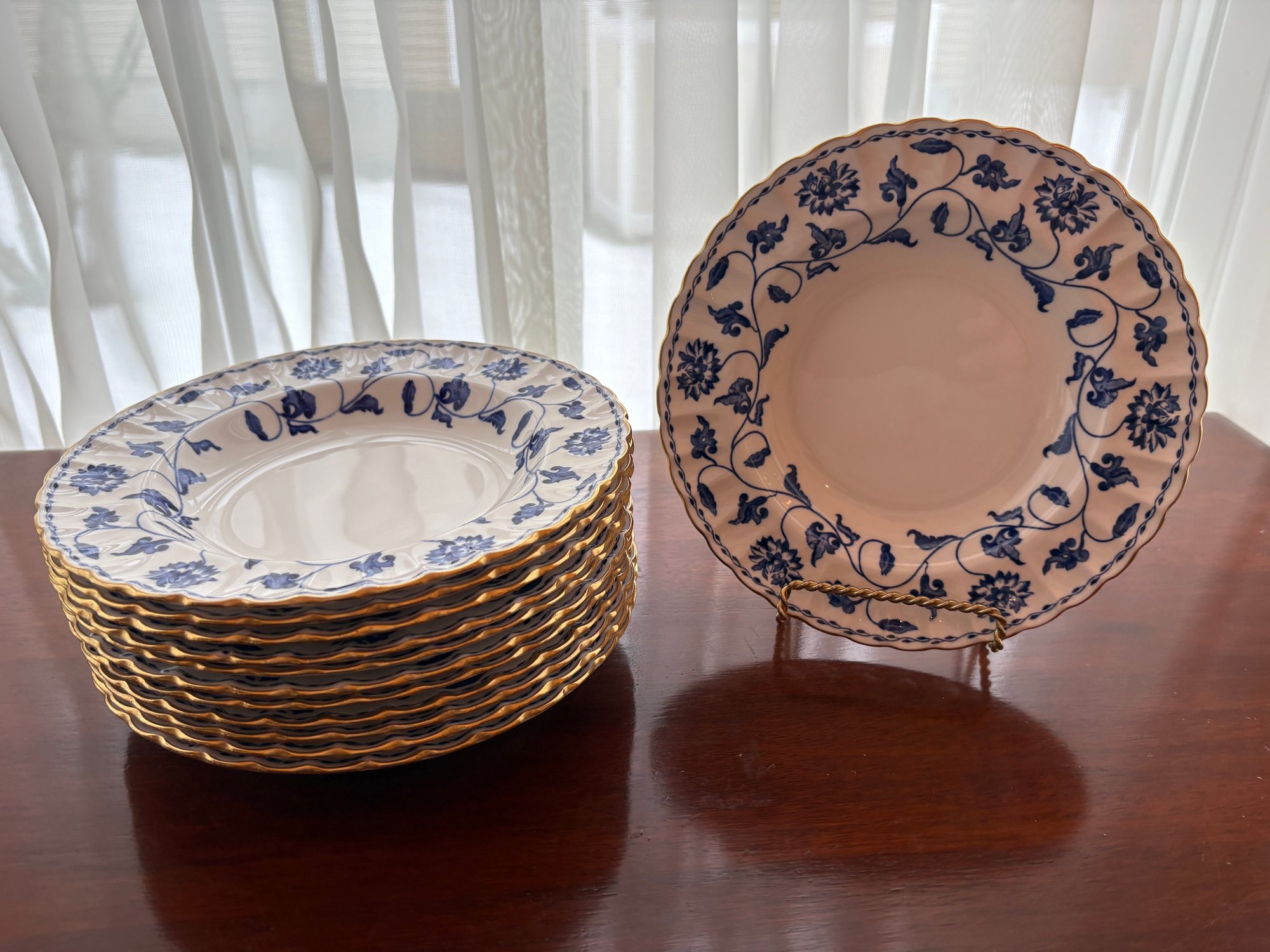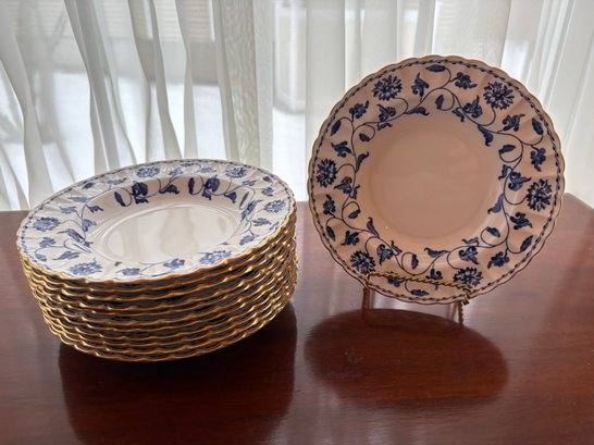 12 Spode Colonel Blue Soup Plates. 8" Wide.