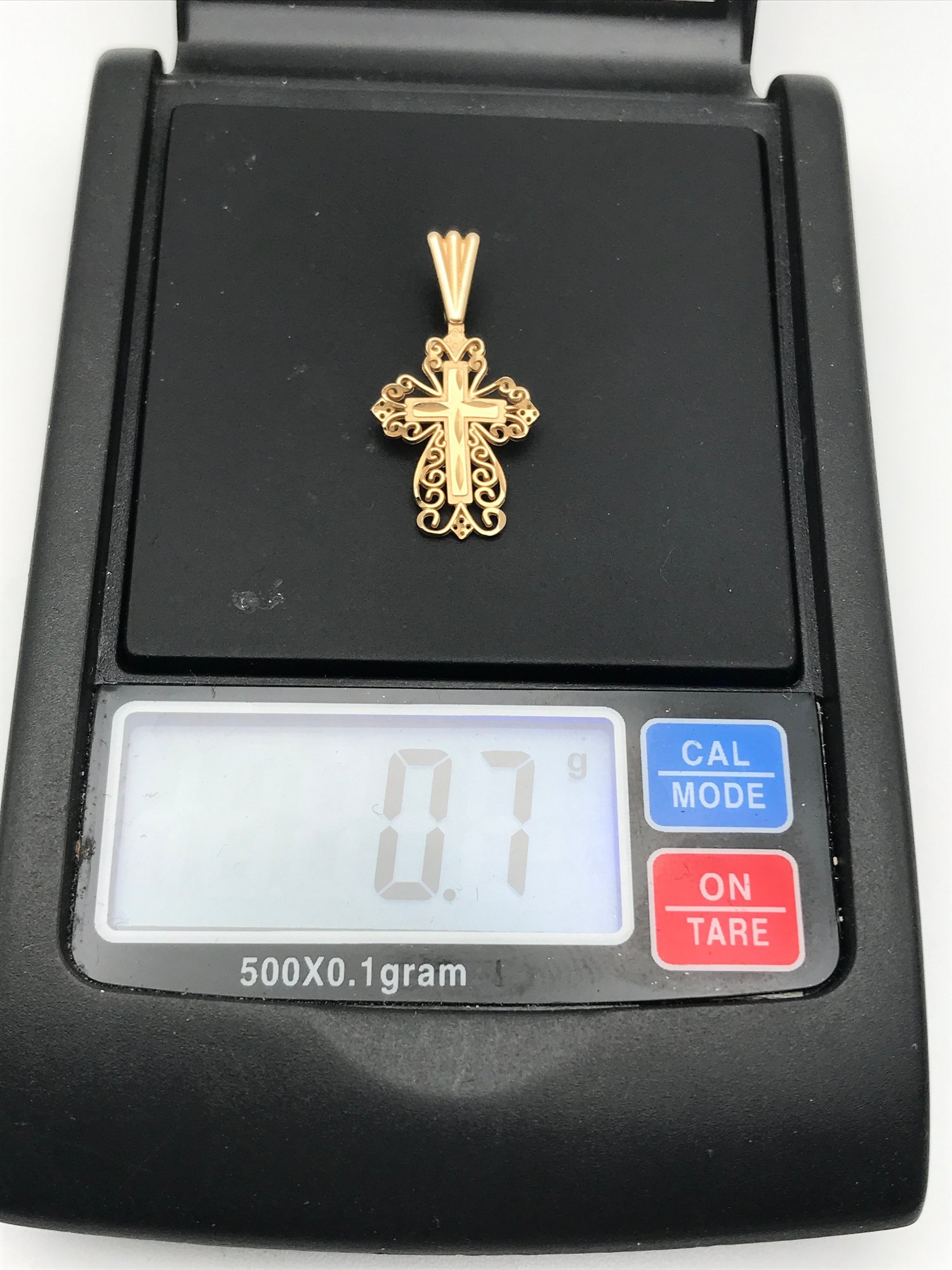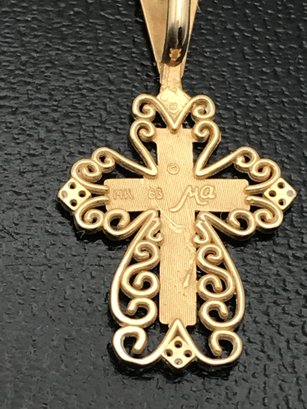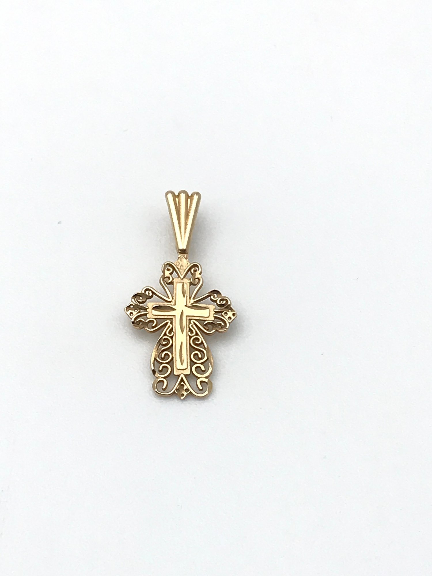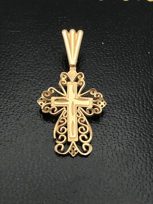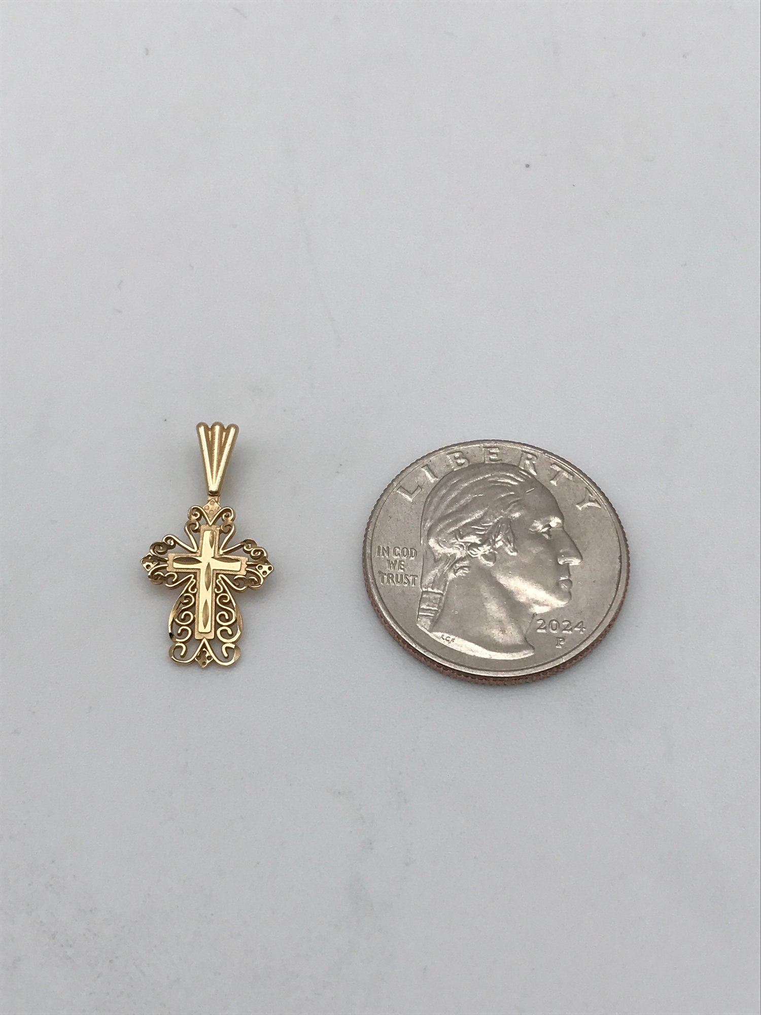 Vintage-Style 14K Yellow Gold Filigree Cross Pendant