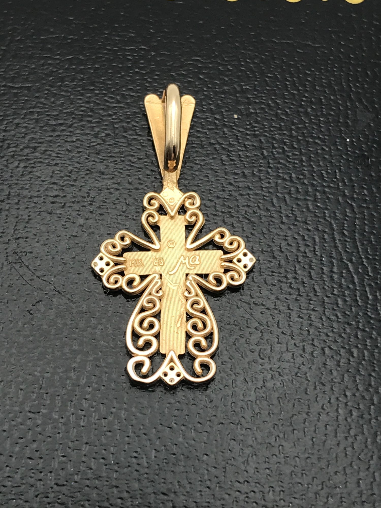 Ornate filigree "budded" cross with a diamond-cut textured center for added brilliance.