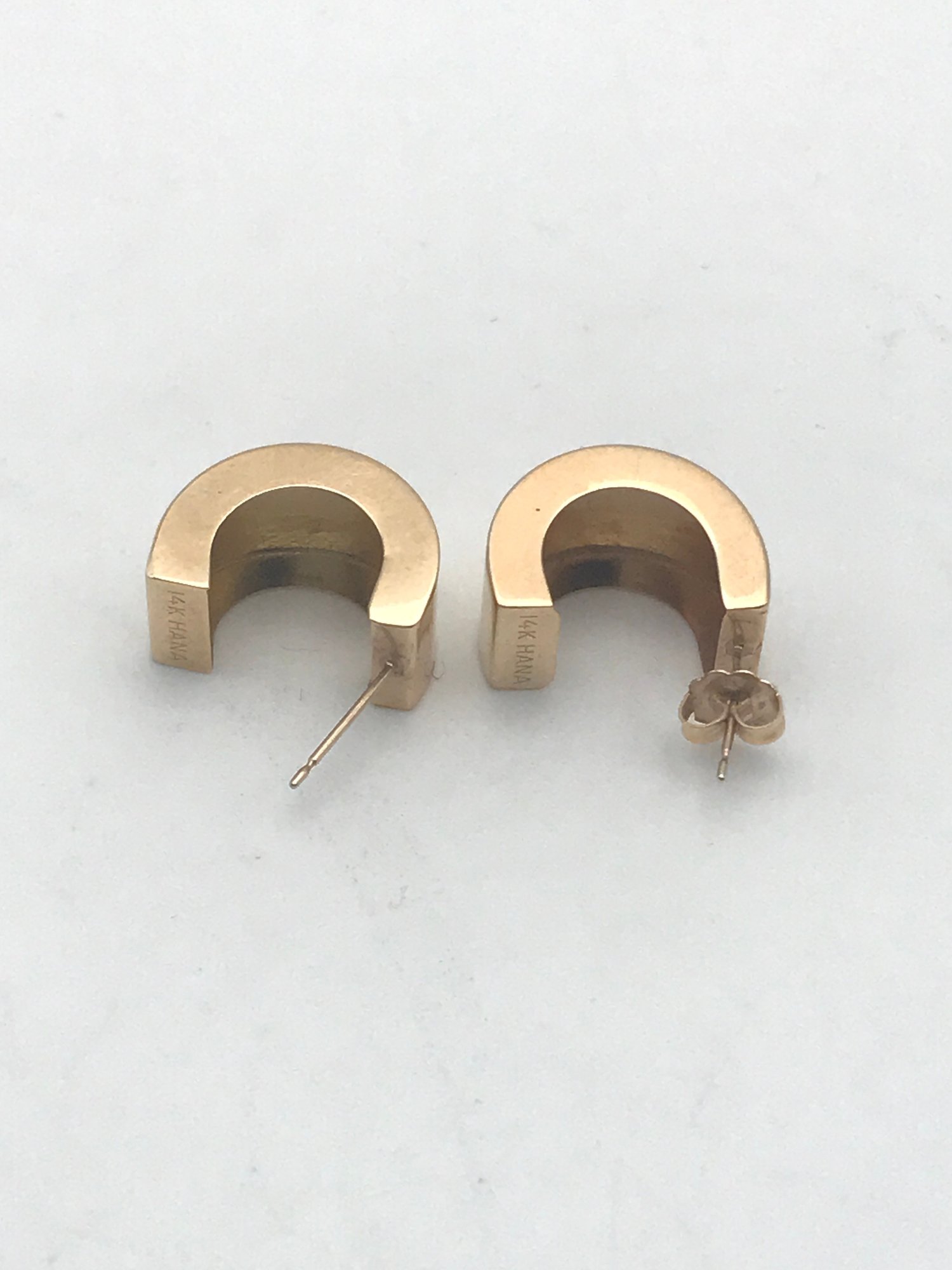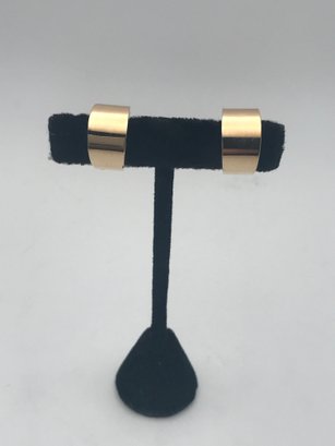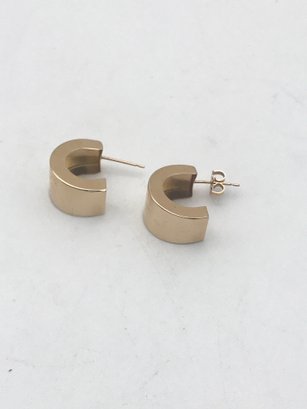 14K Yellow Gold Wide Hoop Stud Earrings