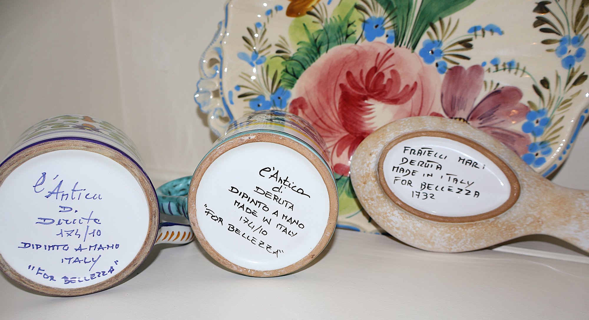 Includes various round plates, square plates, teacups, mugs & spoon rest