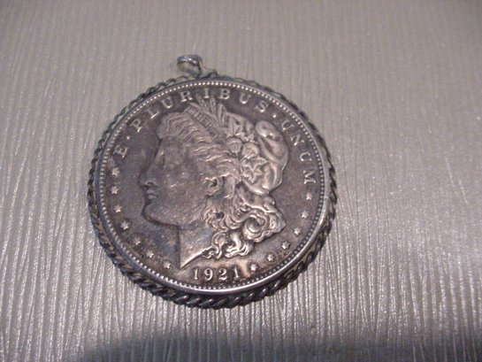 1921 S Morgan Silver Dollar Within A Silver Bezel