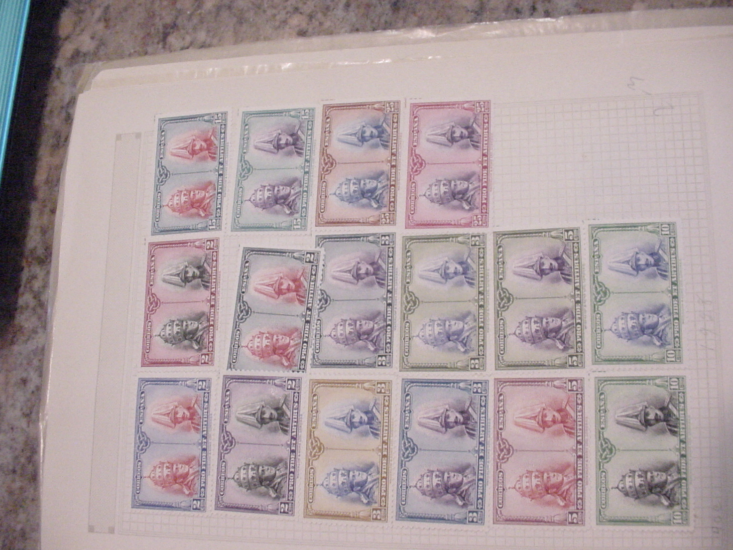 1928 spain stamps- pro fide et artibus , partial set , mint hinged to page