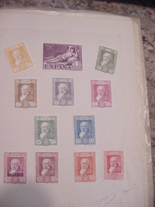 1930 Spain stamps partial set , scotts 386 402. mint hinged to page
