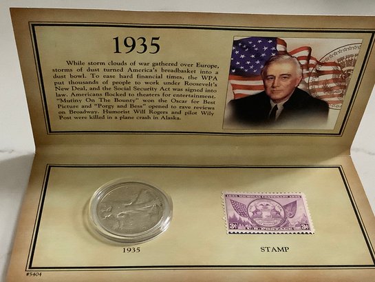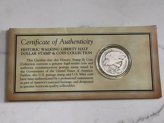 1935 Walking Liberty Half-dollar & Stamp W/ Certificate Of Authenticity #158