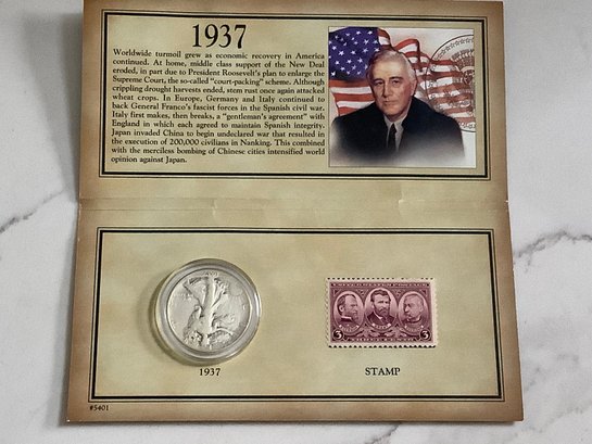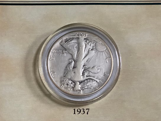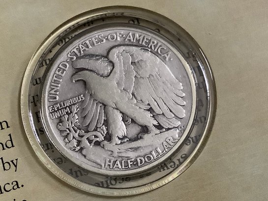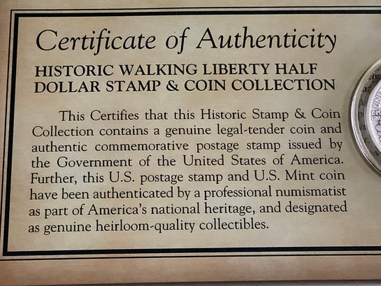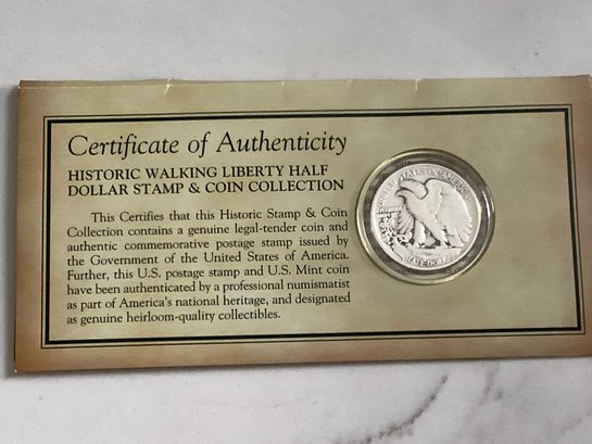1937 Walking Liberty Half-dollar & Stamp W/ Certificate Of Authenticity #160