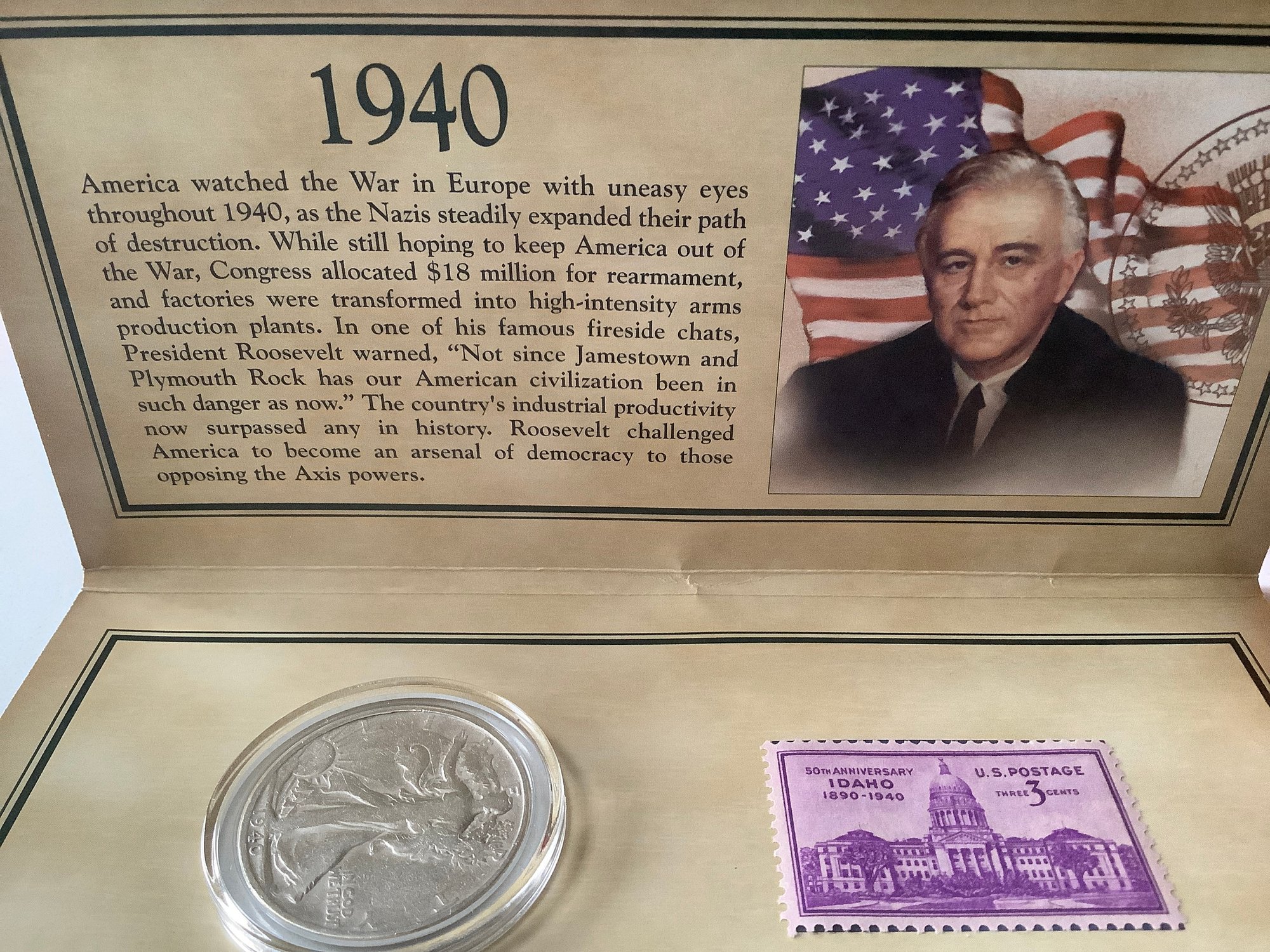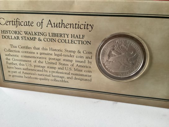 1940 Walking Liberty Half-dollar & Stamp W/ Certificate Of Authenticity #141