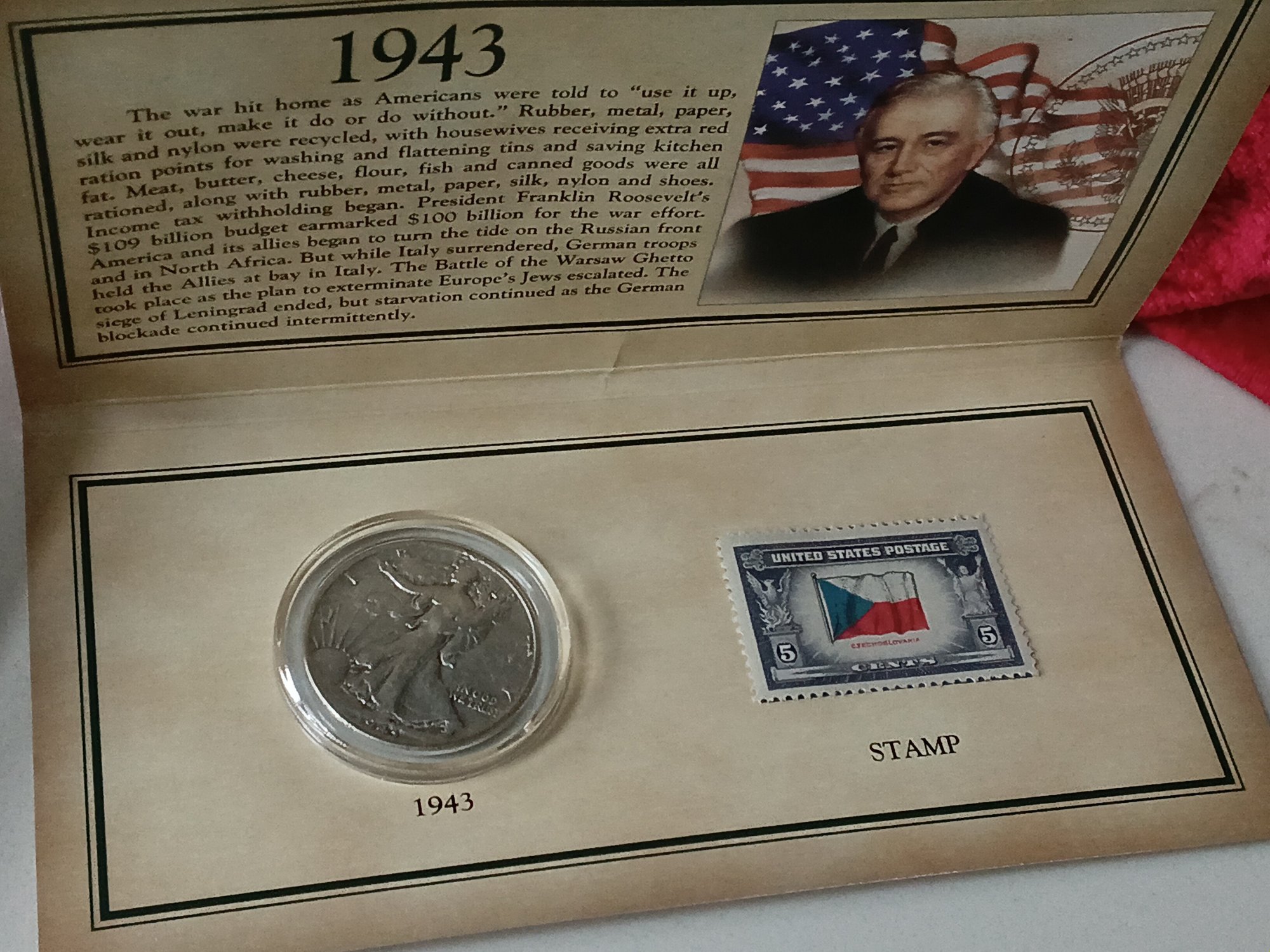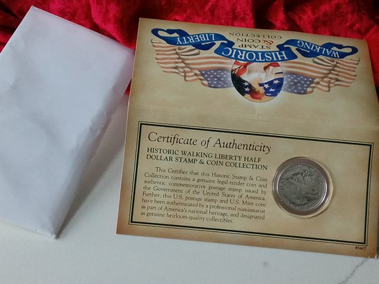 1943 Walking Liberty Half-dollar & Stamp W/ Certificate Of Authenticity #92