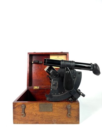 Condition: This sextant is in fine condition with some light scratches and abrasions to the outside of the case. The sextant is believed to be in working order as all the parts are accounted for and in place, though we have not tested it on any voyages.