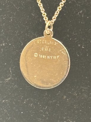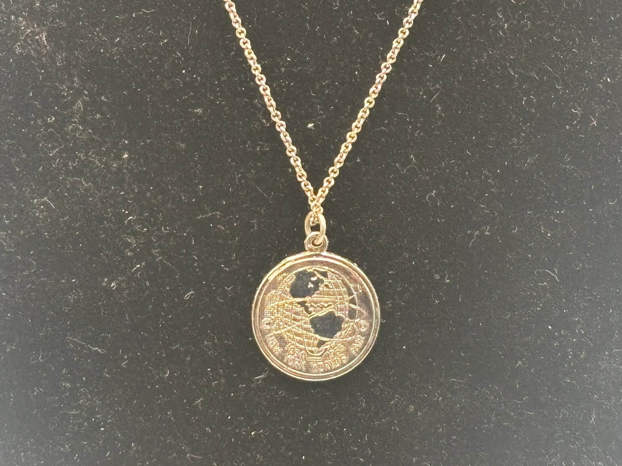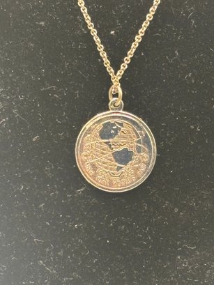 A collectible sterling silver pendant commemorating the 1964 New York World’s Fair, featuring a detailed globe-and-atoms motif symbolizing the Space Age optimism of the era. Marked sterling and dated 1964, this piece captures the futuristic spirit and design language of mid-century America. A great blend of jewelry and history—perfect for collectors, fair memorabilia enthusiasts, or anyone who loves iconic NYC ephemera.