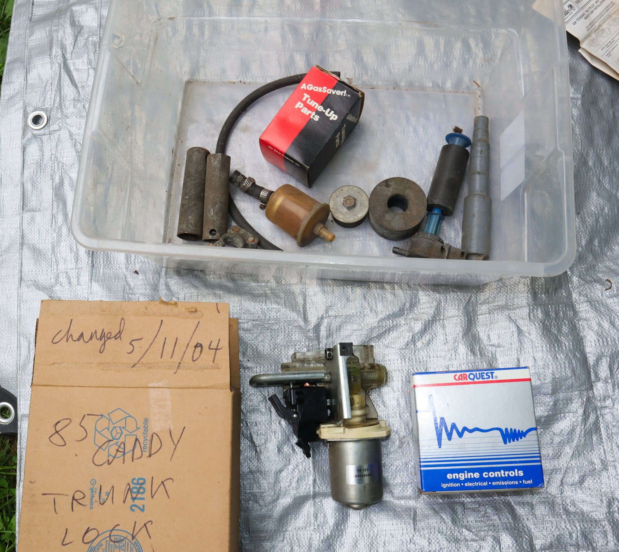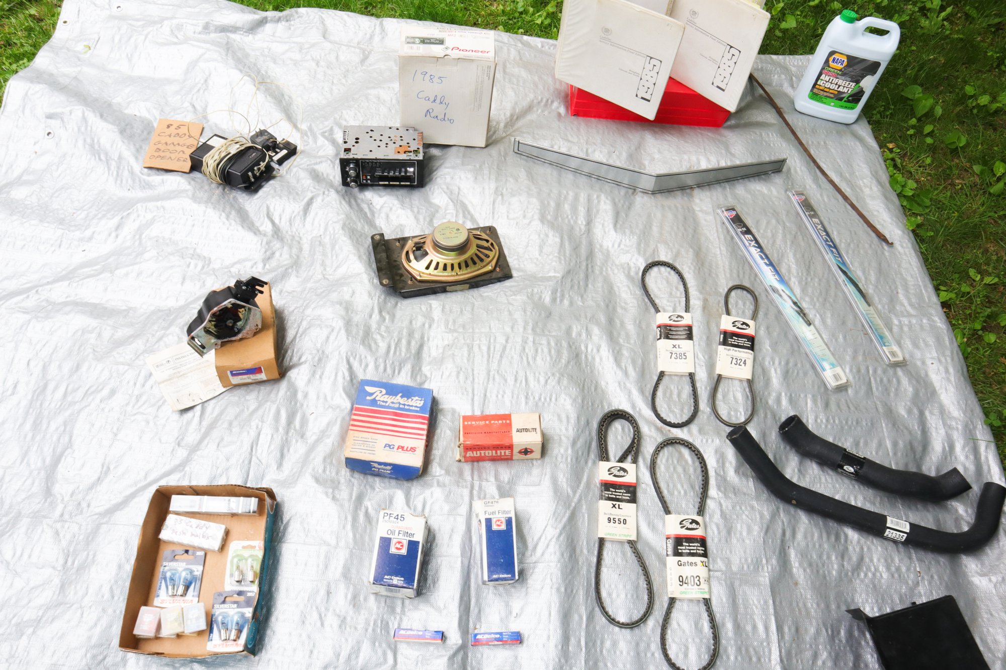 Original Radio! Trunk Lock, Washer pump, Garage door opener and more! Nothing in these lots have been tested.