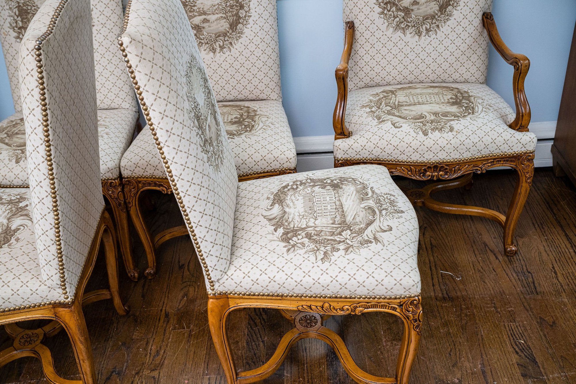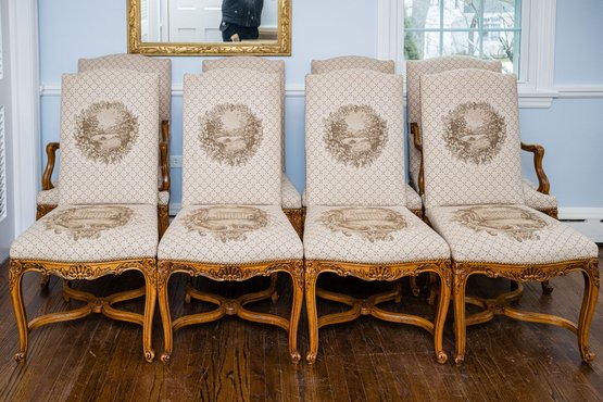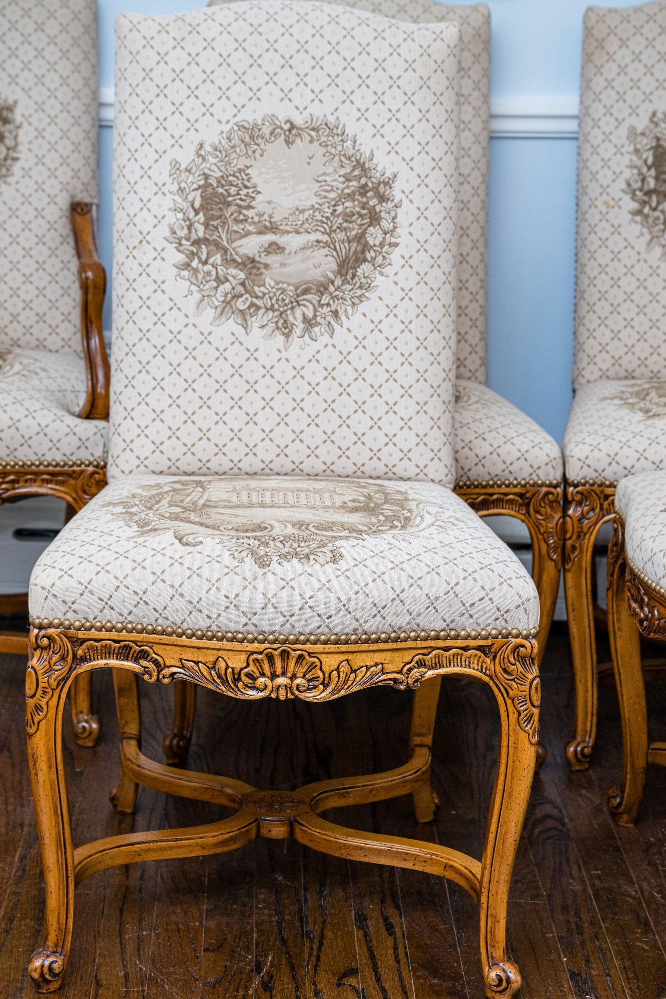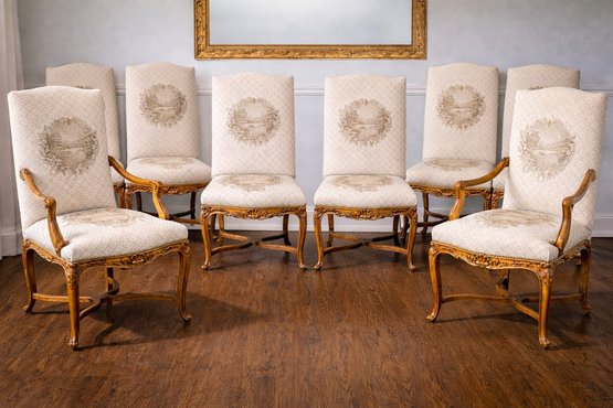 Exceptional dining chairs appointed with details galore, beautiful touches and wonderful condition throughout.