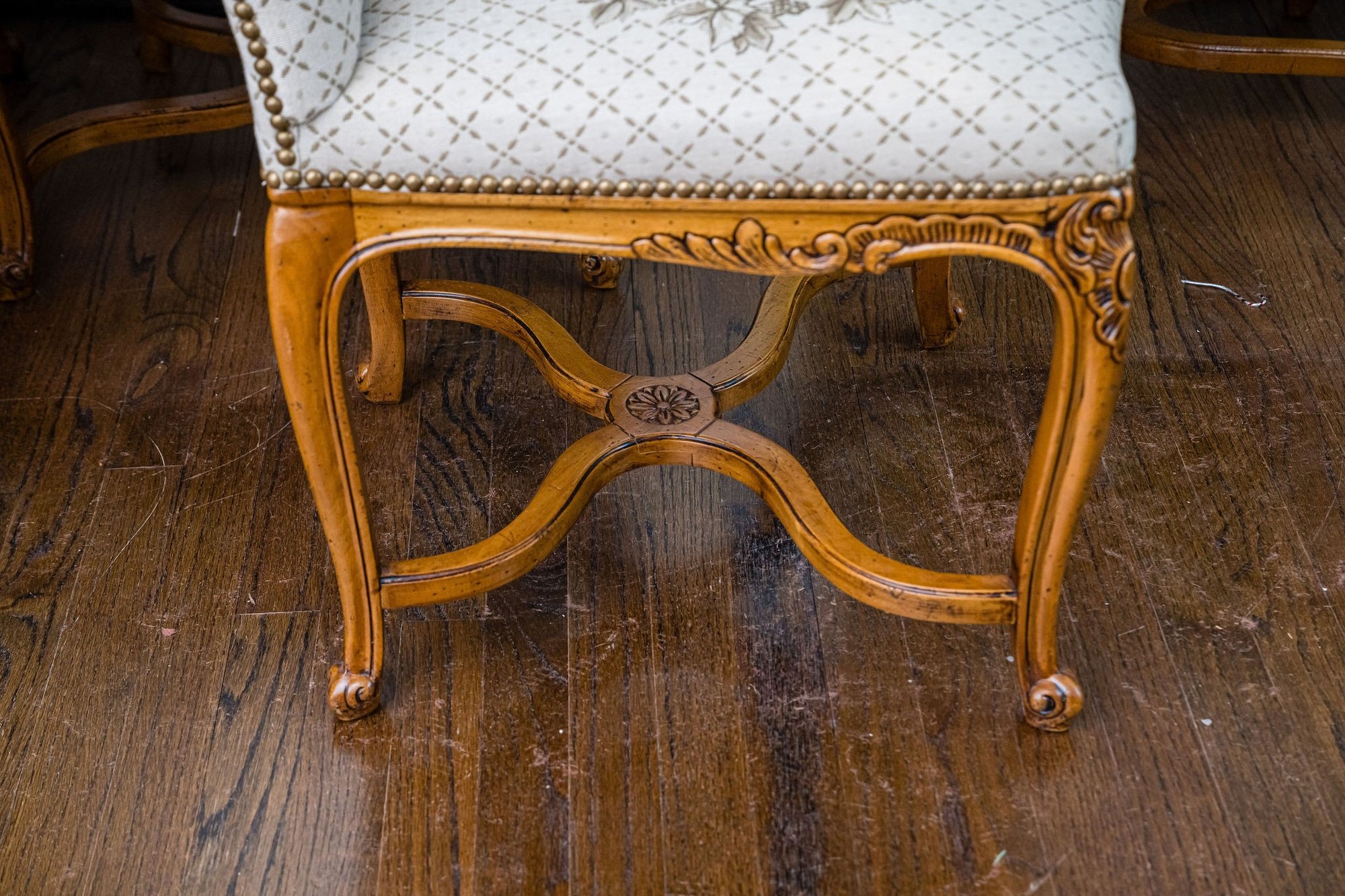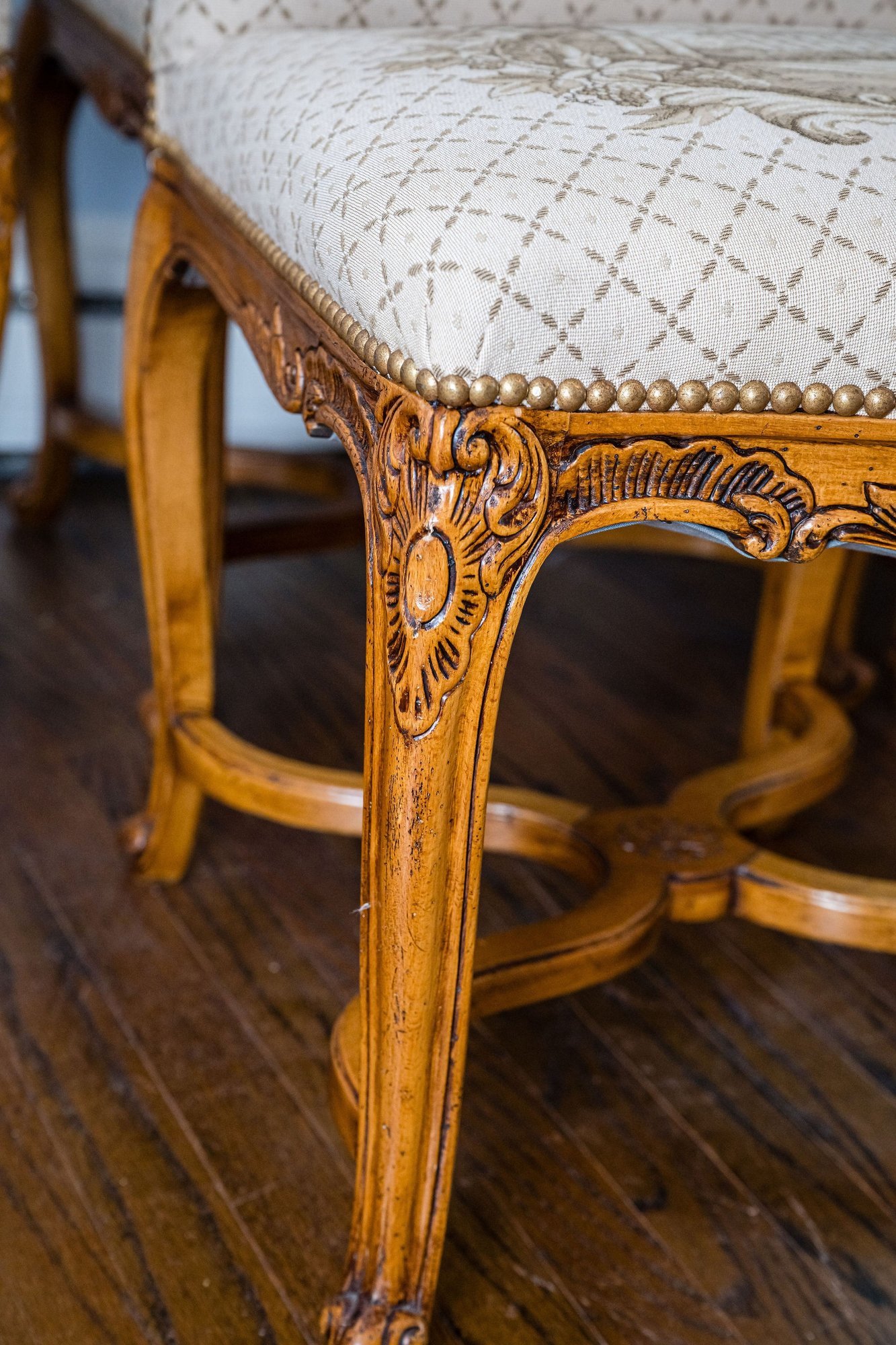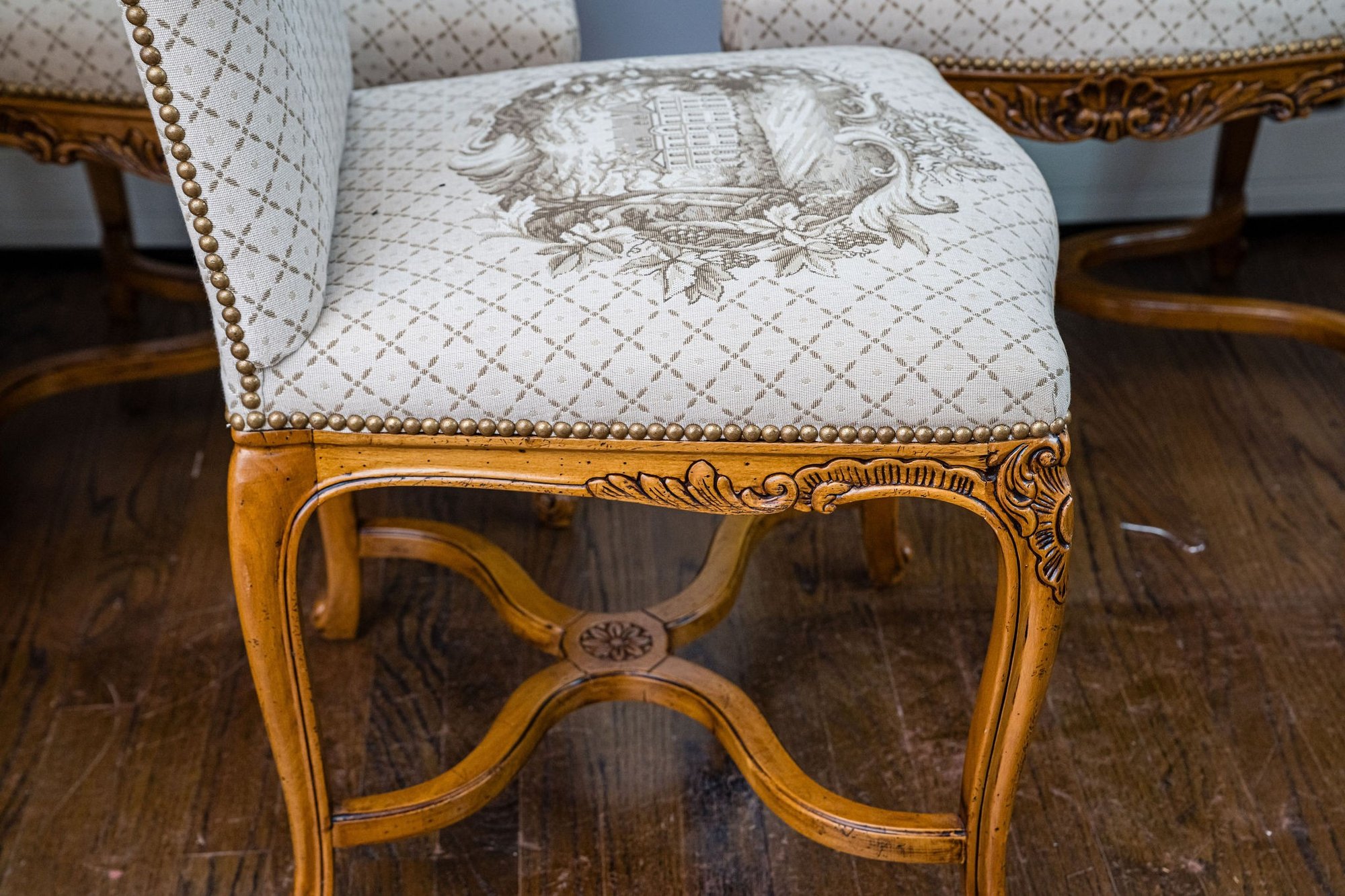 Exceptional dining chairs appointed with details galore, beautiful touches and wonderful condition throughout.
