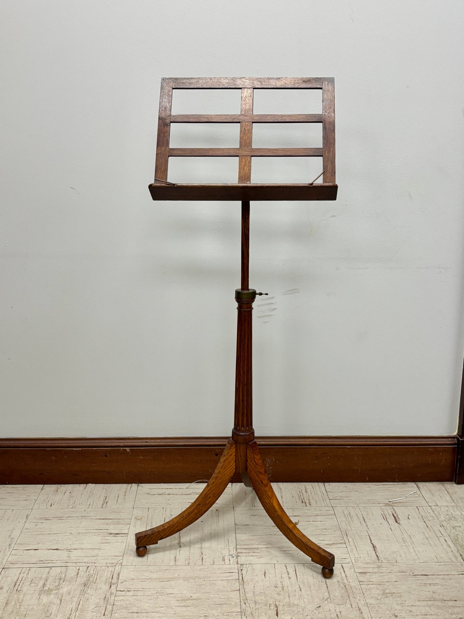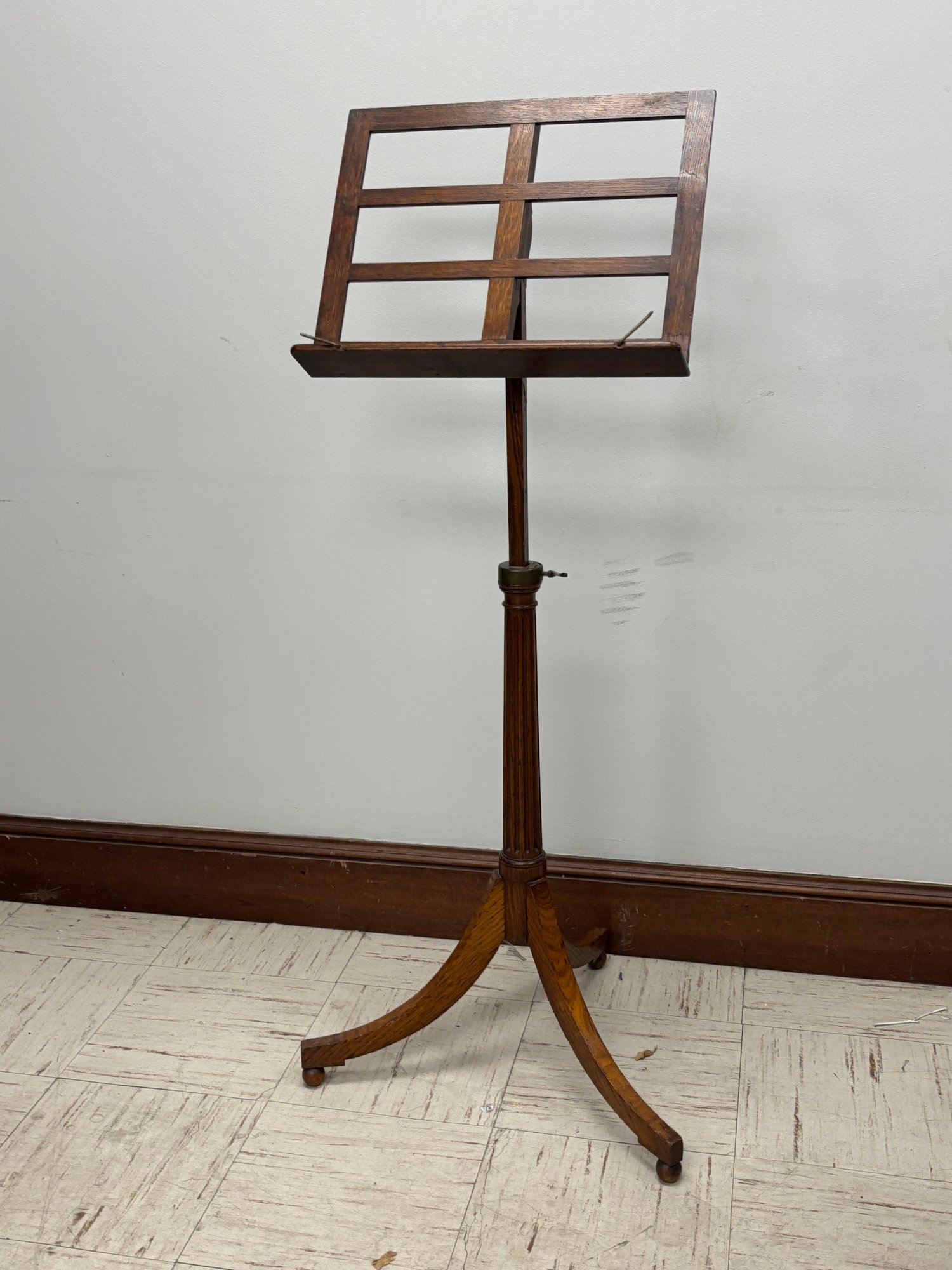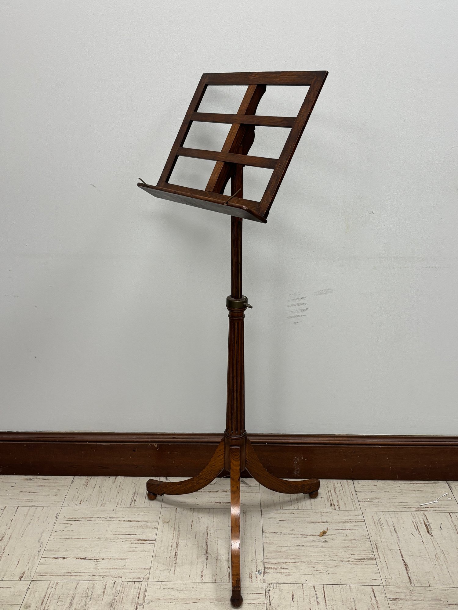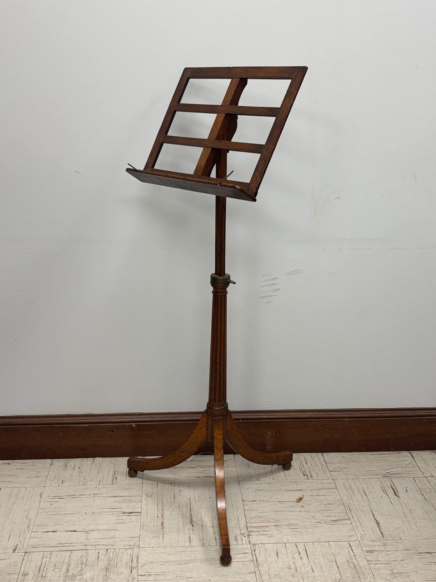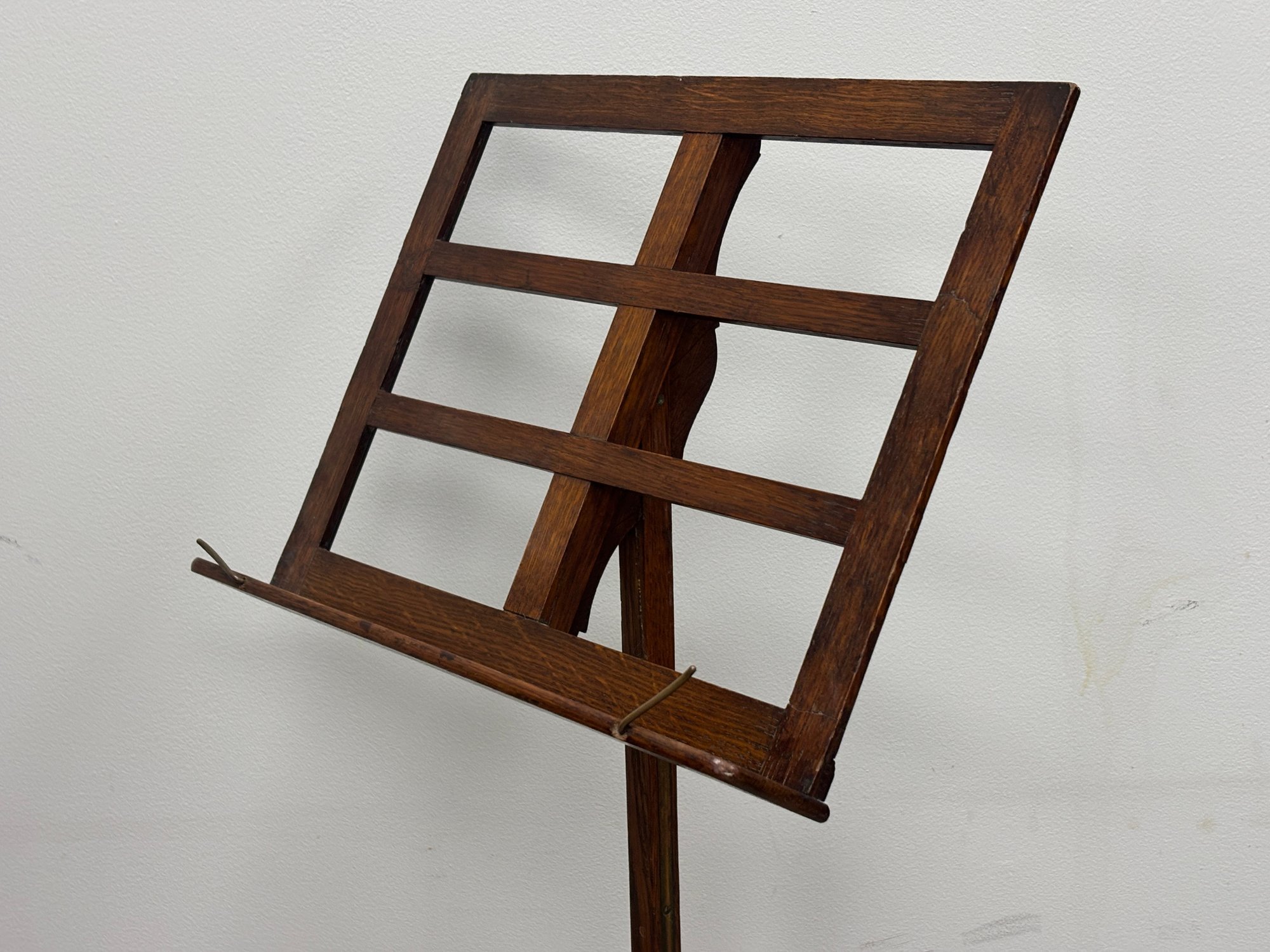 This is not a parlor novelty or later decorative revival. The construction, scale, and hardware point to a professional-grade music stand produced for conservatories, teaching studios, churches, or formal music rooms in the late 1800s to early 1900s.