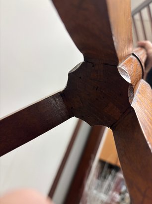 Hand-shaped legs and joinery, showing tool marks and age appropriate shrinkage