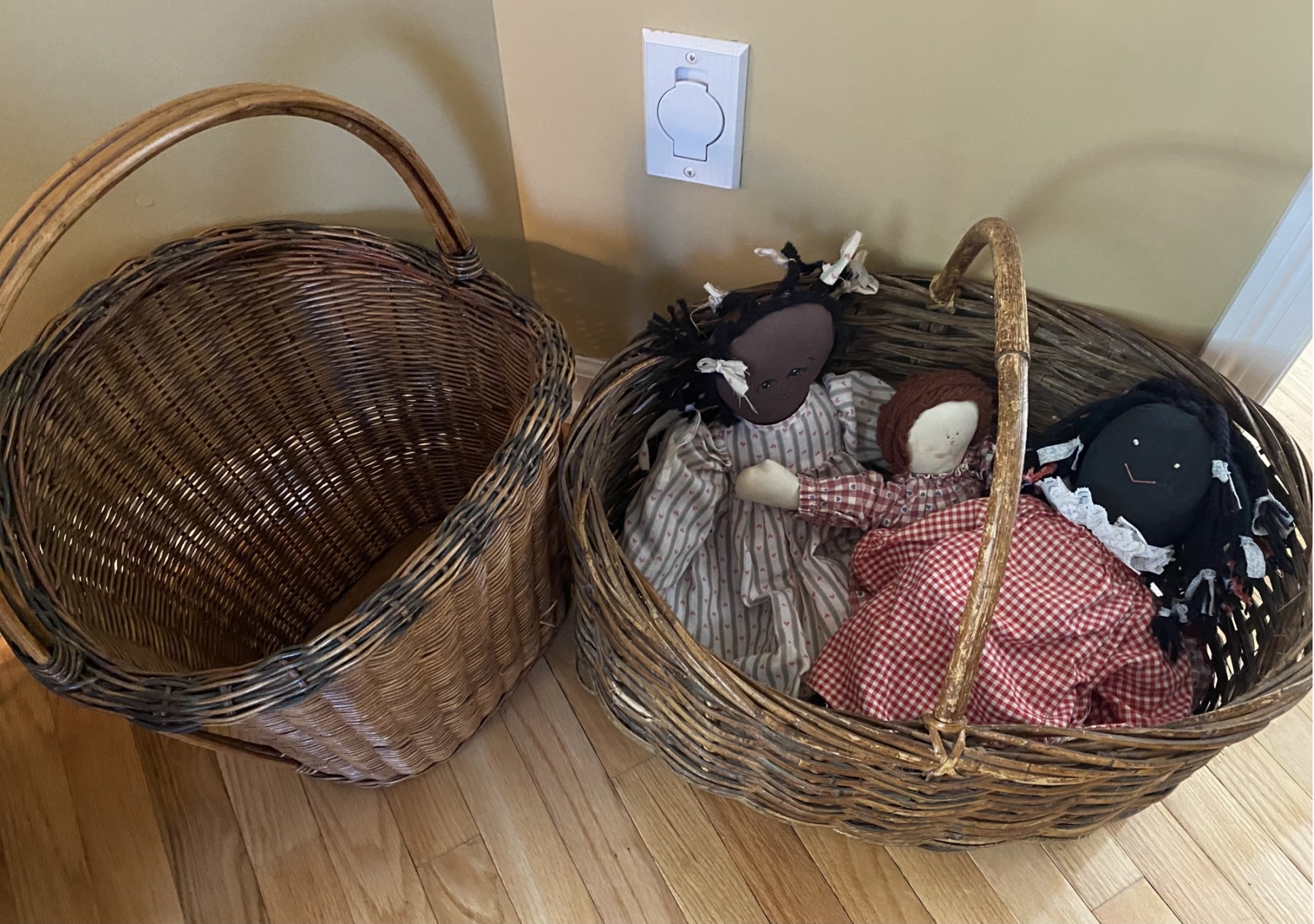 includes 3 handmade baby dolls. quality baskets