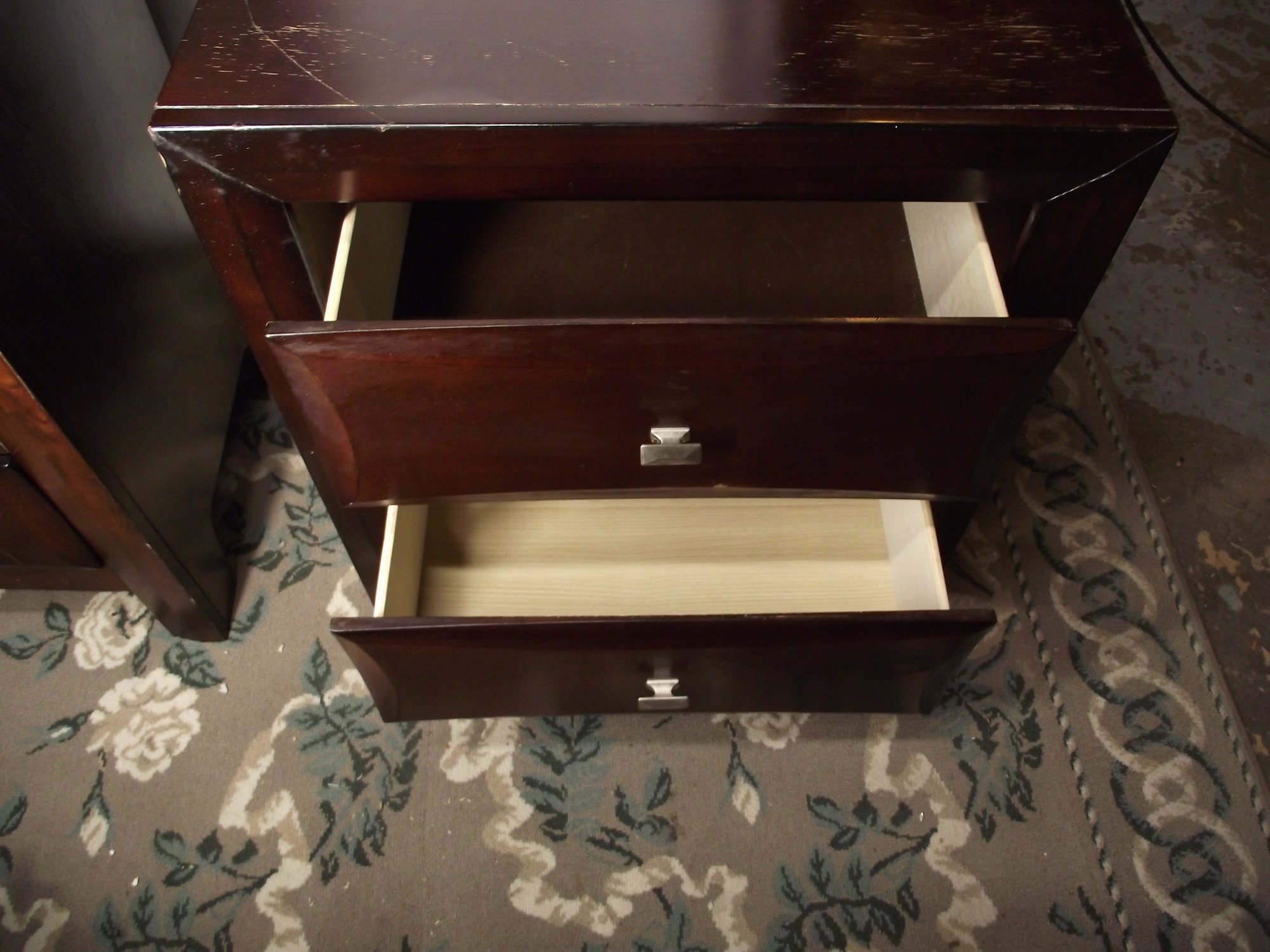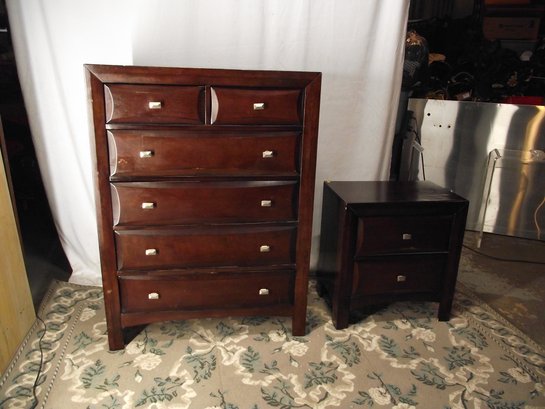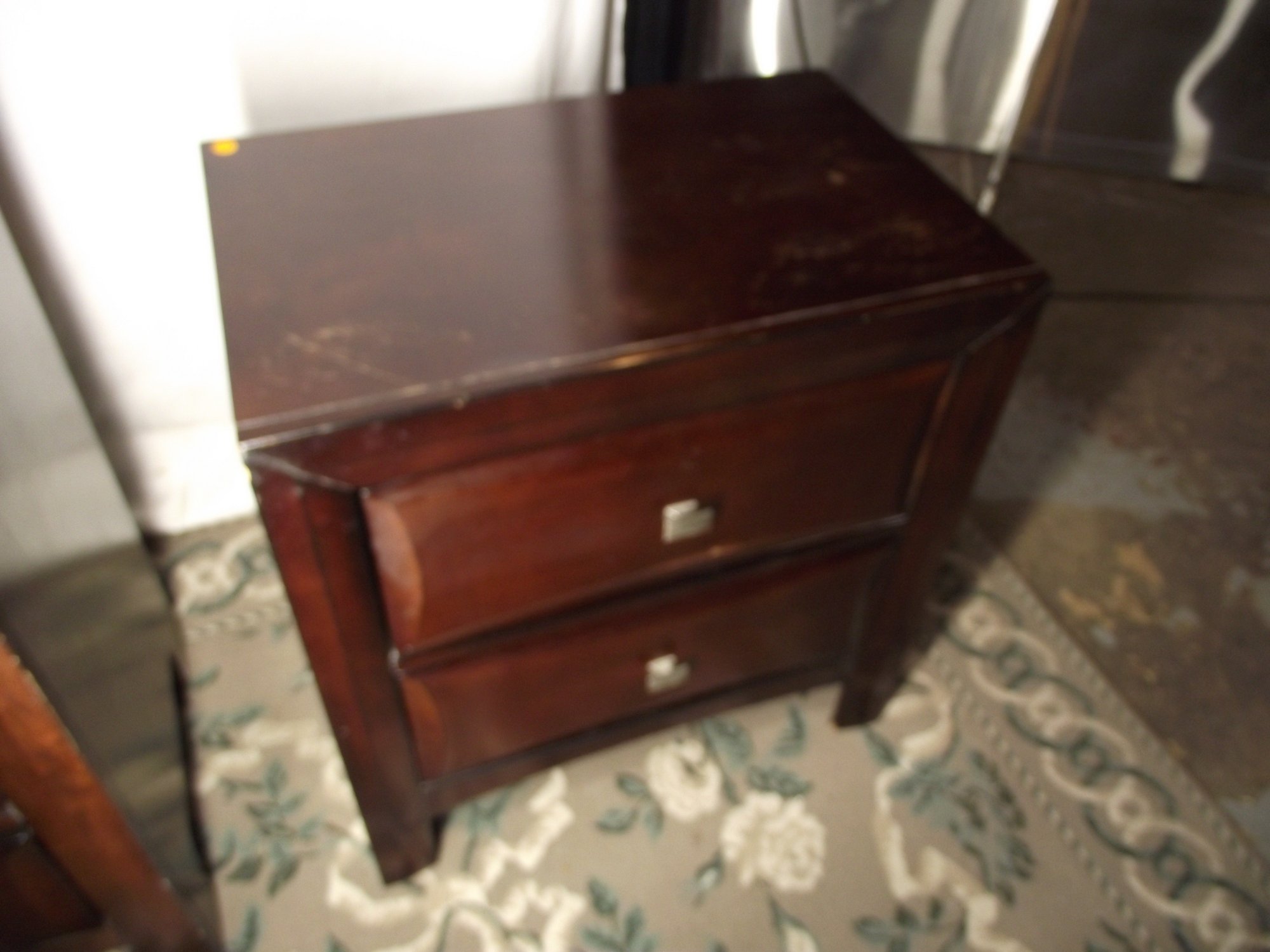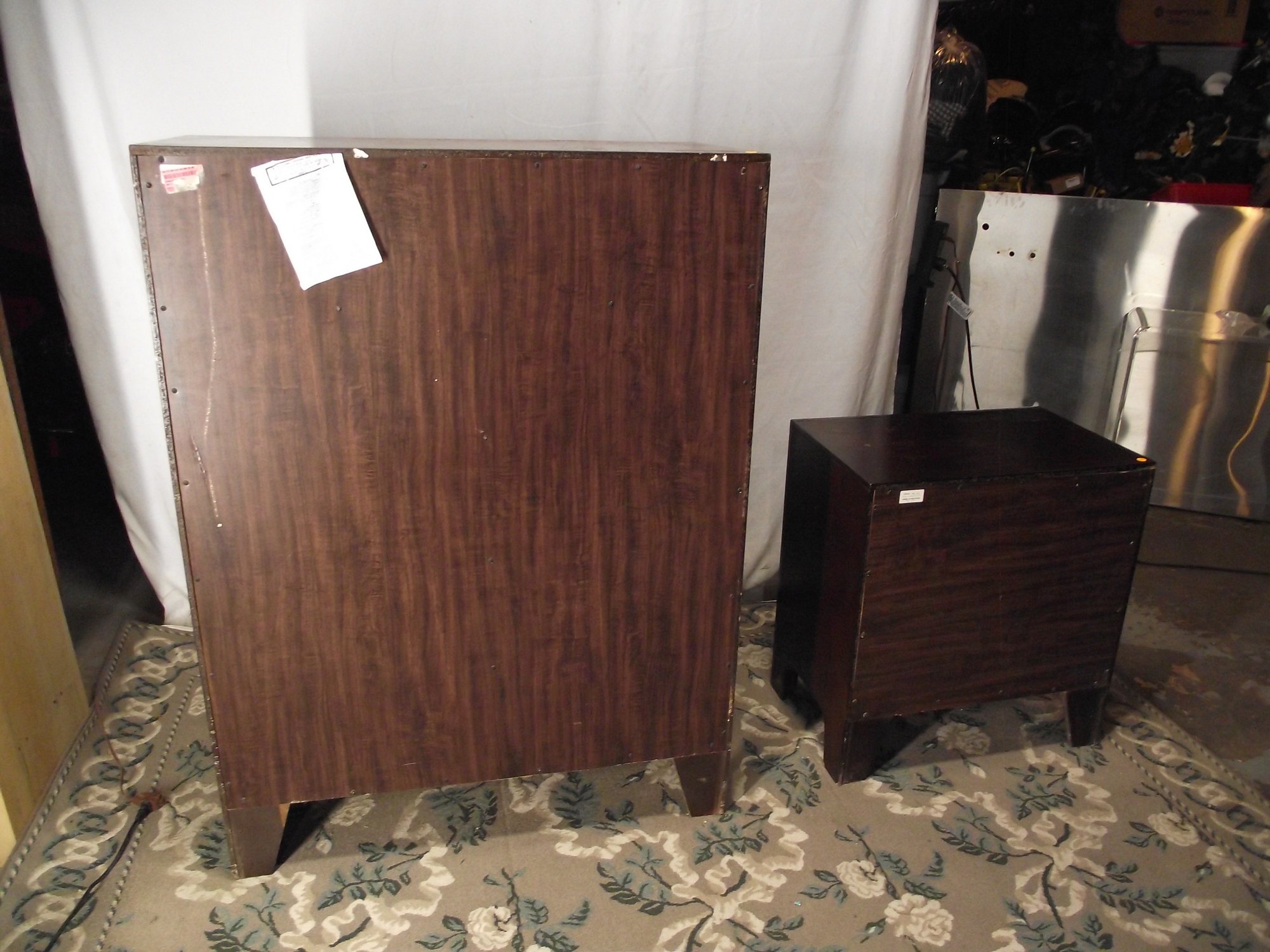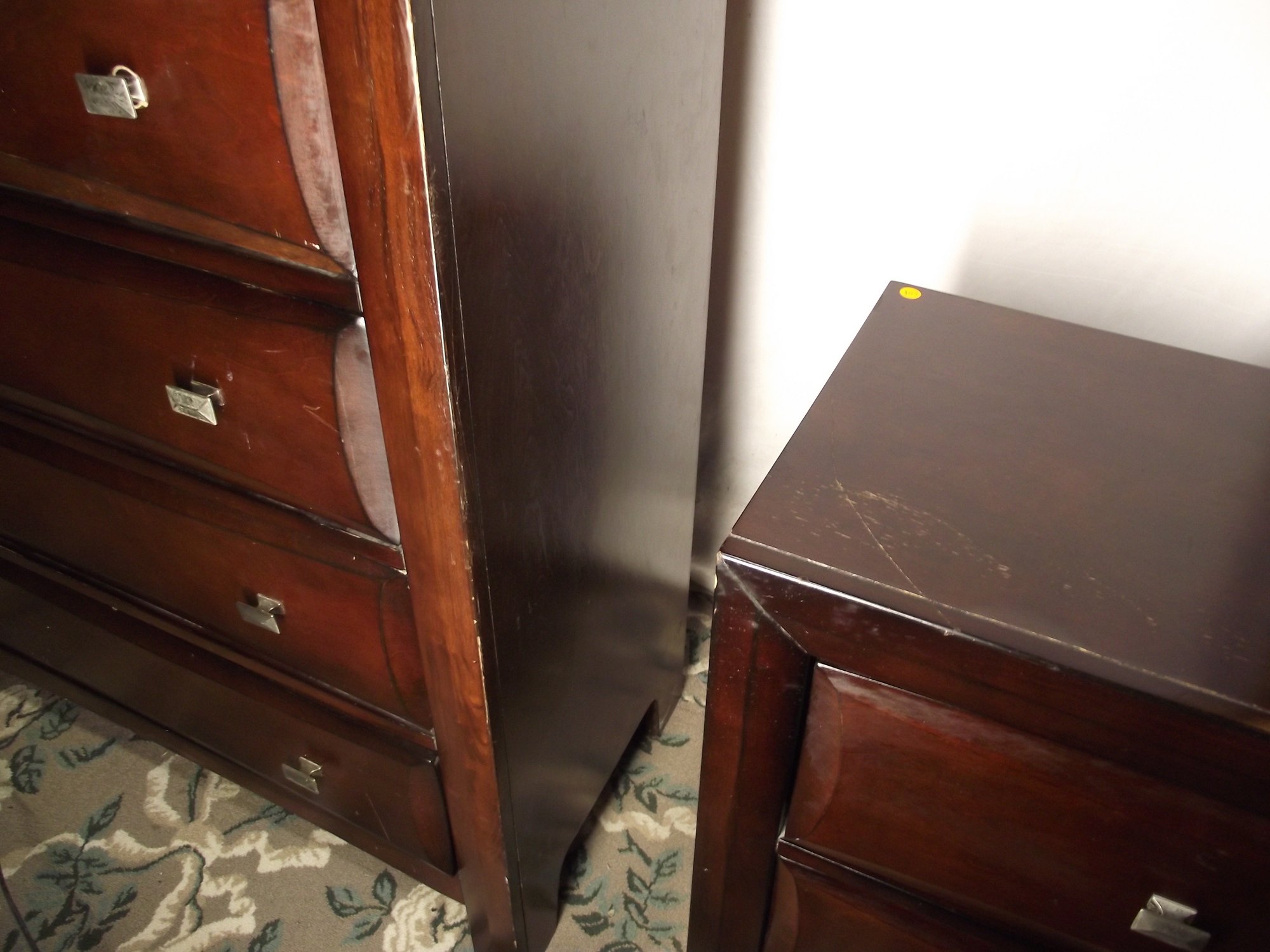 2 PIECE COMBO 6 DRAWER WOODEN DRESSER WITH MATCHING 2 DRAWER NIGHTSTAND. SEE PHOTOS FOR CONDITION.