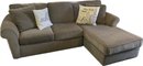 Comfortable sectional sofa, comprising of a right arm chaise and left arm sofa, upholstered in a soft, durable fabric.