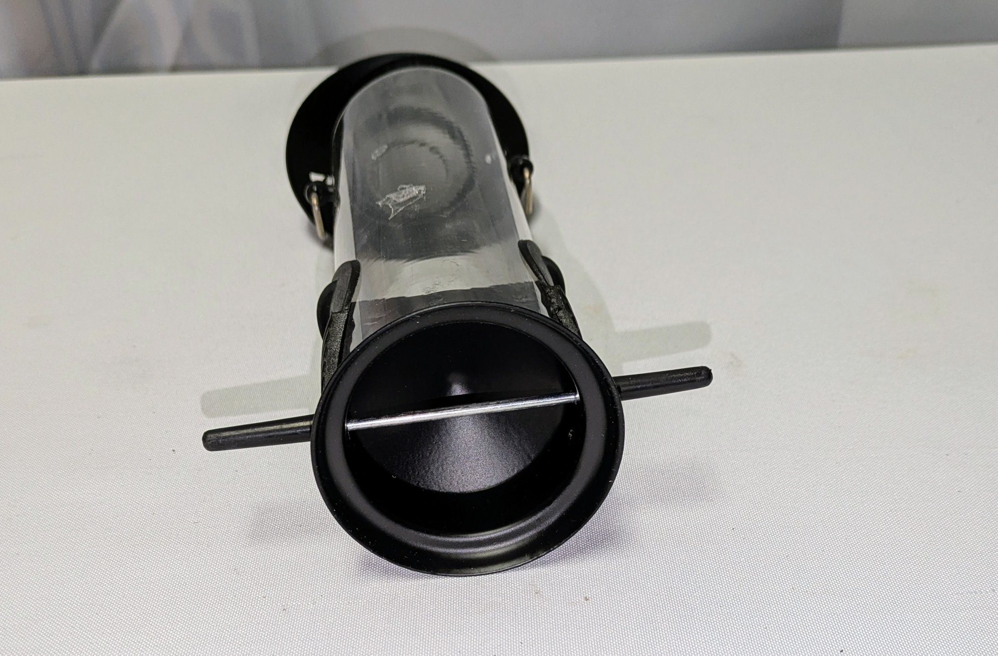 2 Port Hanging Bird Feeder. Excellent Condition. Please see all photos as part of the description and condition. 8"H / Hangs 12.5" x 2.75"