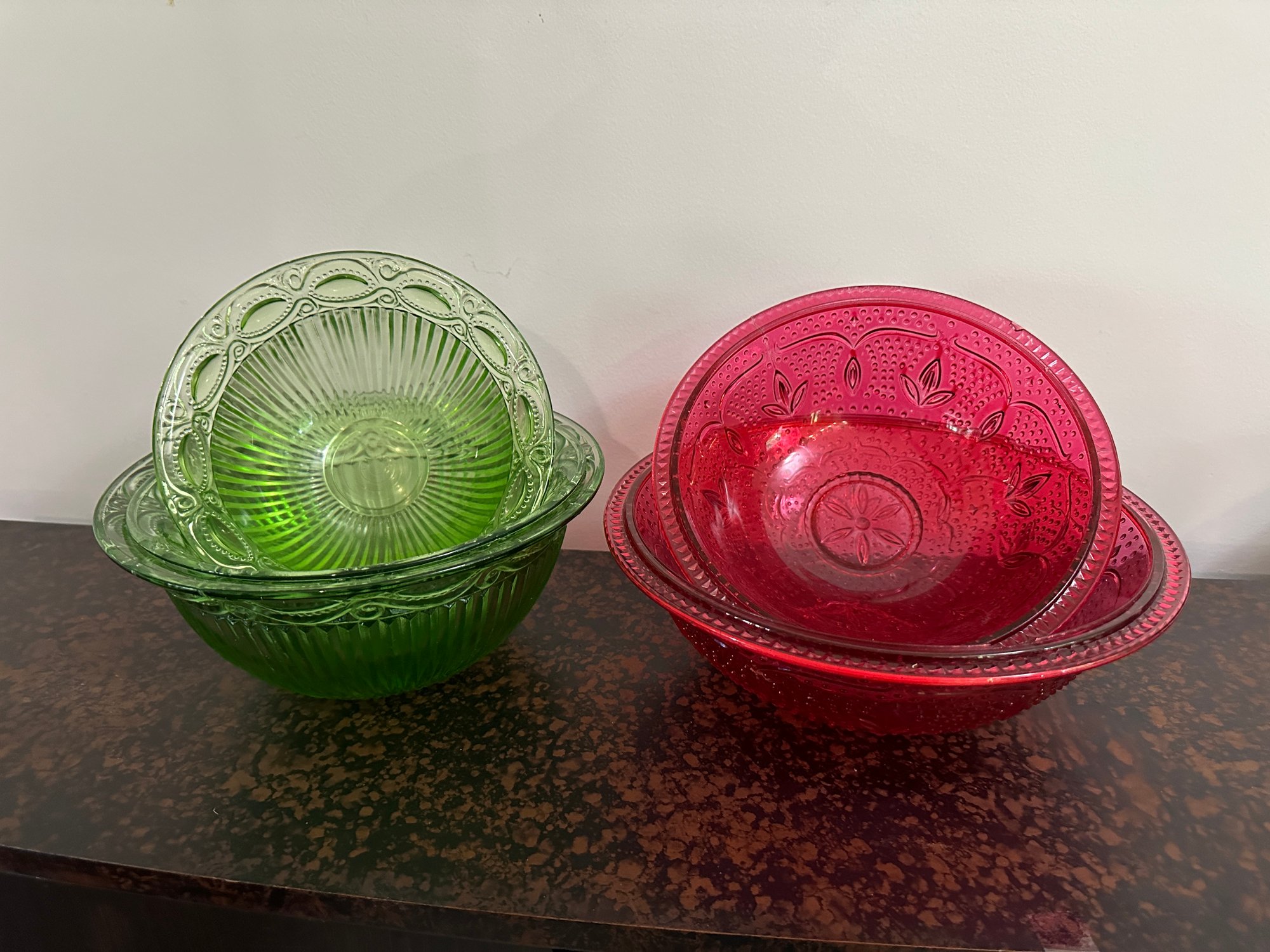 3 green ASP 2004 is an indication of how it was made rather than the maker. The maker was LG Wright Co. and was made around 1964. Red bowls are unmarked