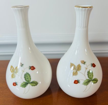 2 Small Wedgewood Bone China Vases - Wild Strawberry