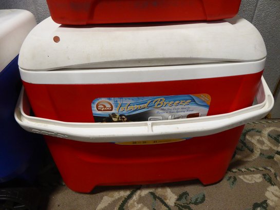 3 Igloo Coolers And 2 Igloo Thermoses