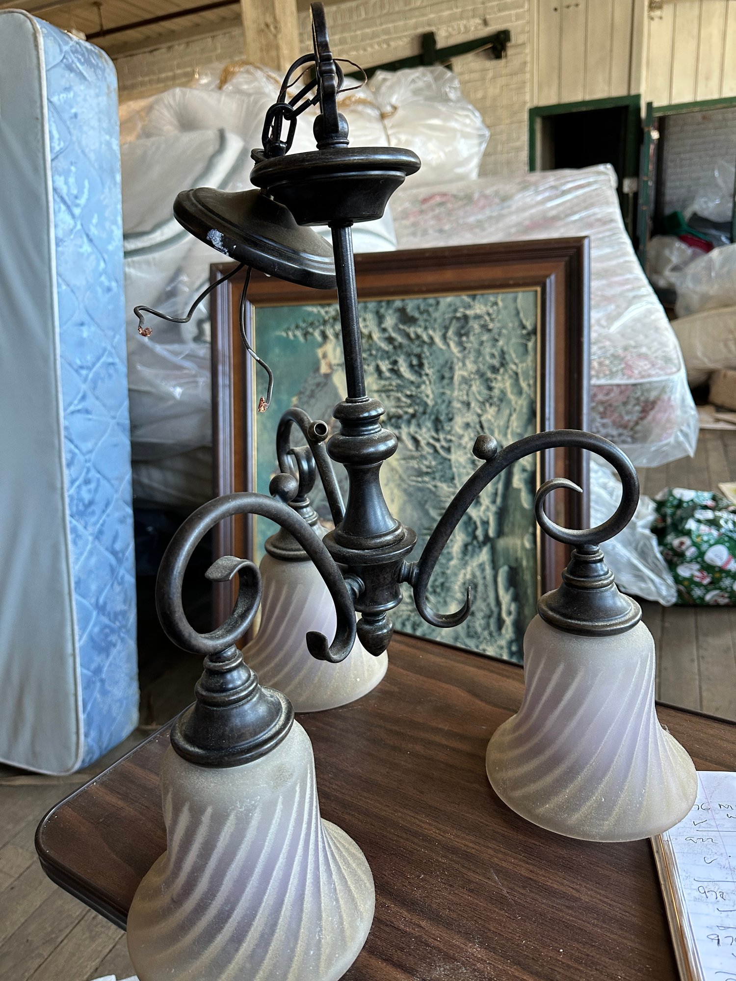 3 Light Chandelier With Frosted Swirl Glass Shades