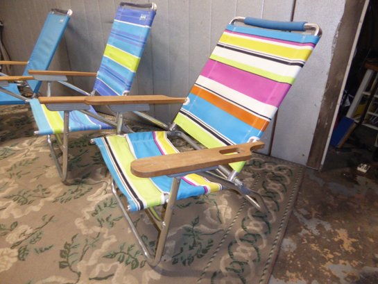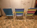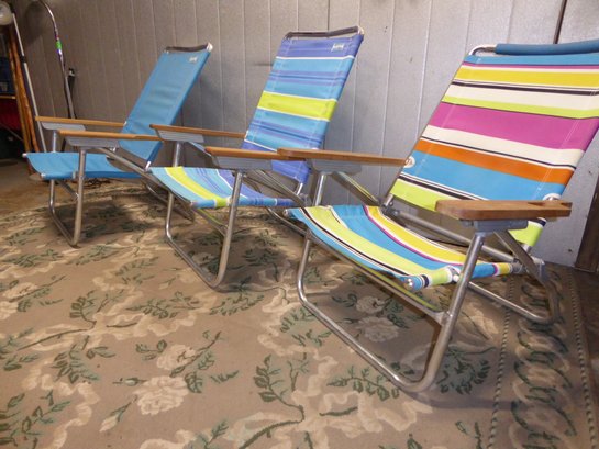 3 Lightweight Beach Or Poolside Adjustable Folding Chairs